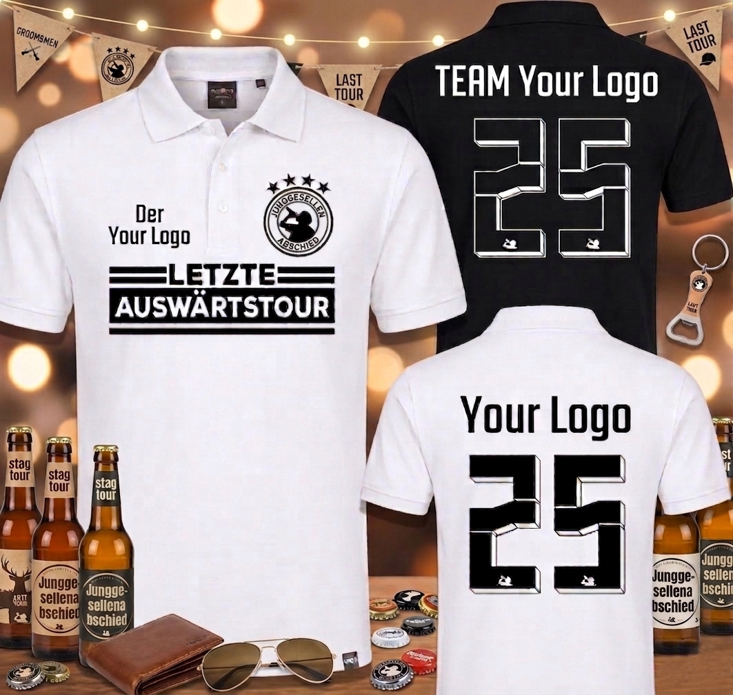 Das perfekte Rundum-Sorglos-Paket für den unvergesslichen Junggesellenabschied: Bestehend aus hochwertigen Polo-Shirts (wahlweise für Männer oder Frauen).