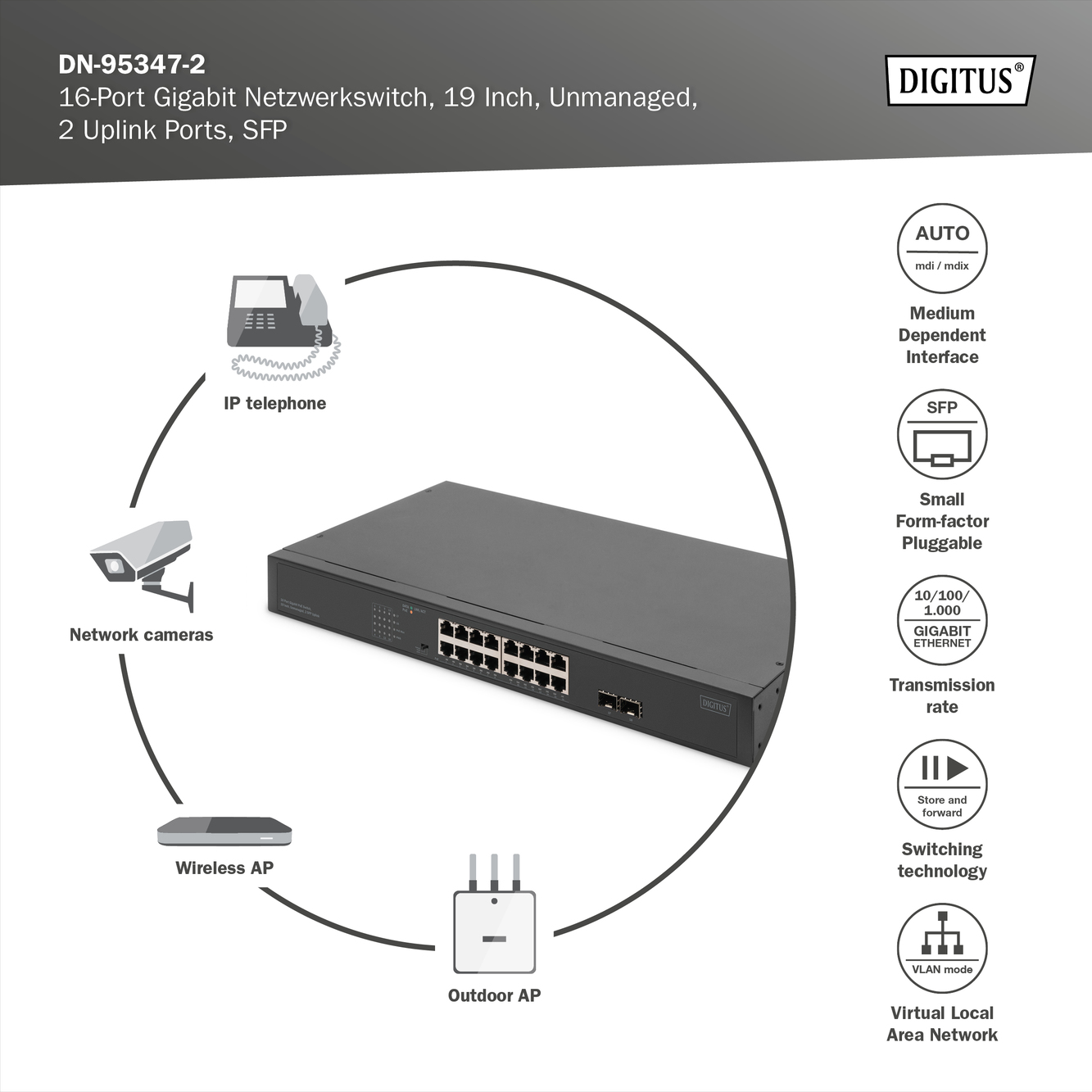 16-Port Gigabit + 2-Port Gigabit SFP Unmanaged PoE Switch