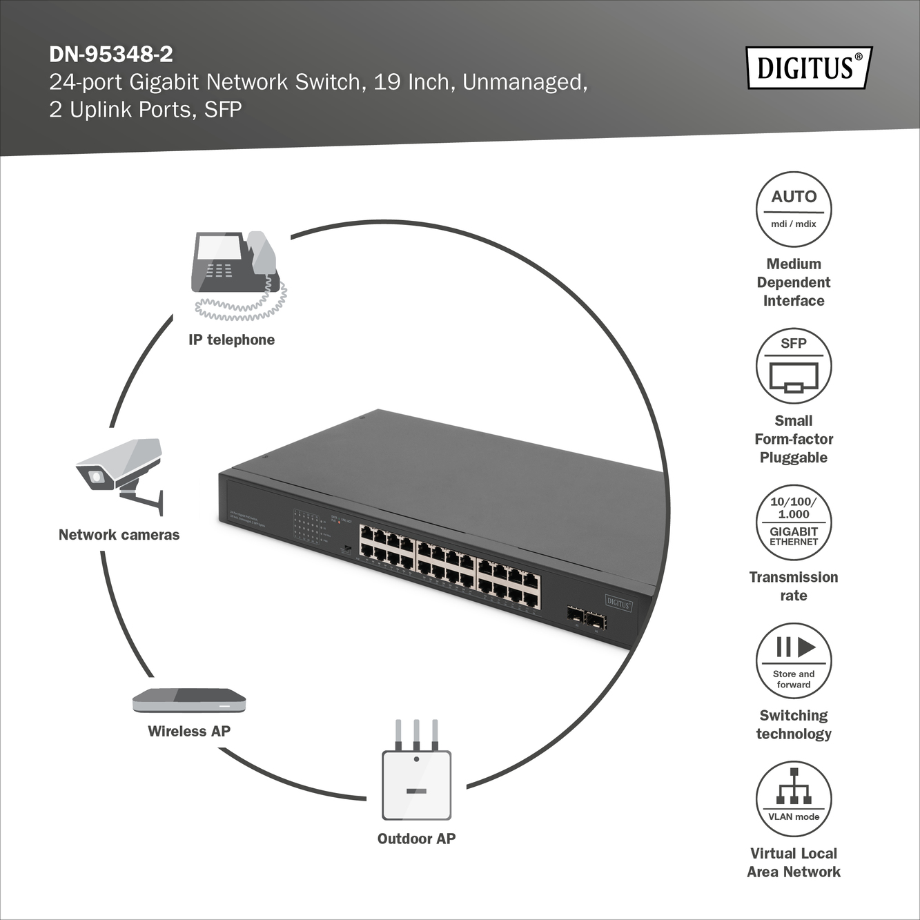 24-Port Gigabit + 2-Port Gigabit SFP Unmanaged PoE Switch