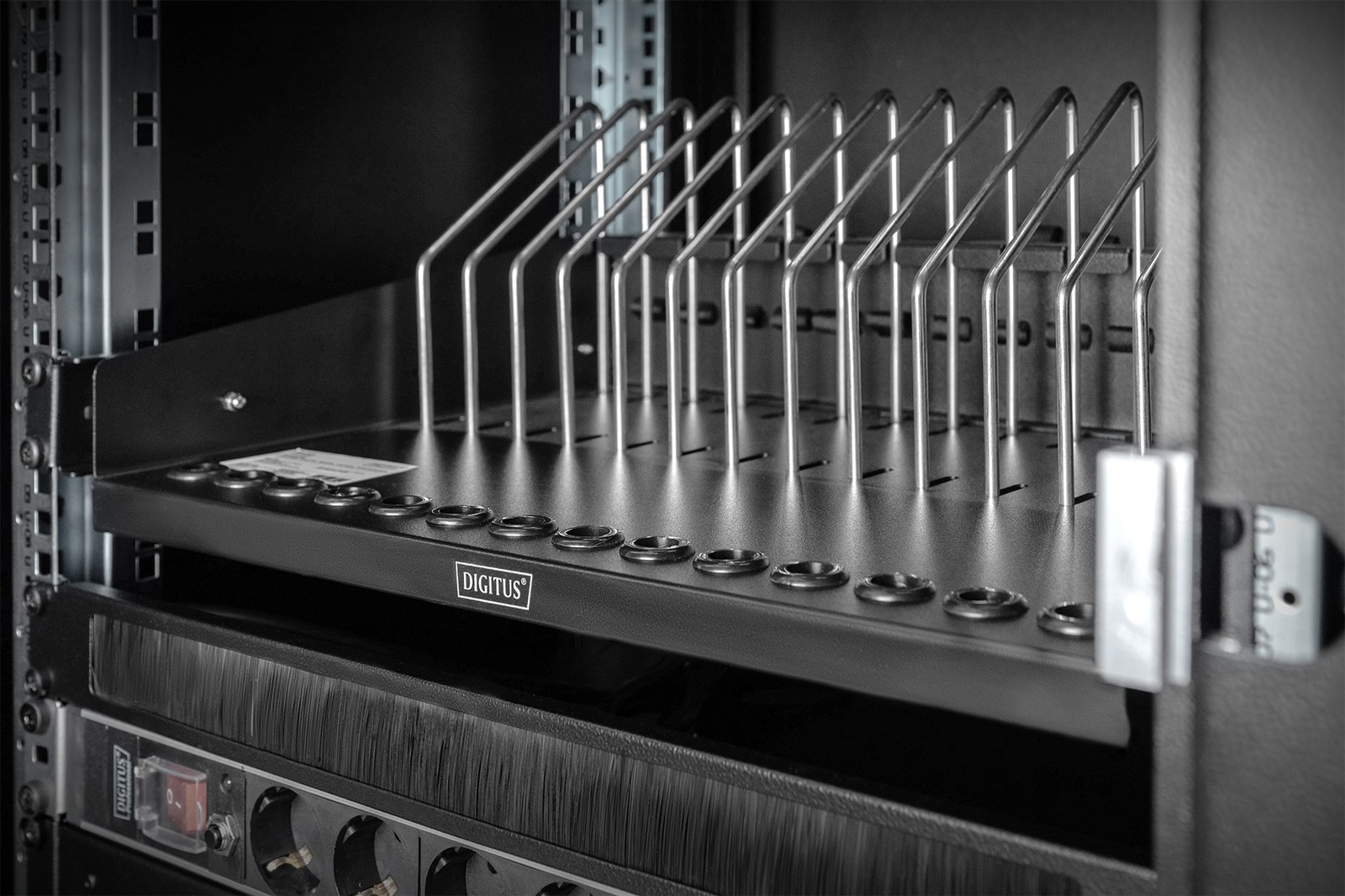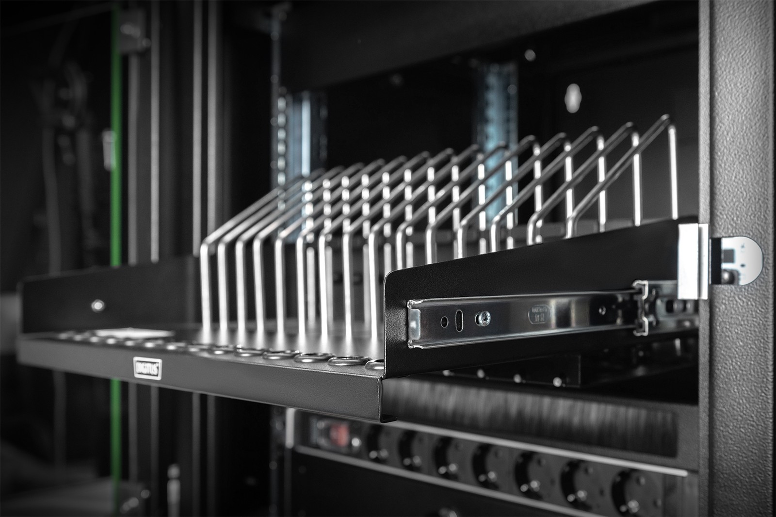 Ausziehb. Fachboden für Tablets, Laptops, Smartph. 175x483x340 mm, schwarz (RAL 9005)