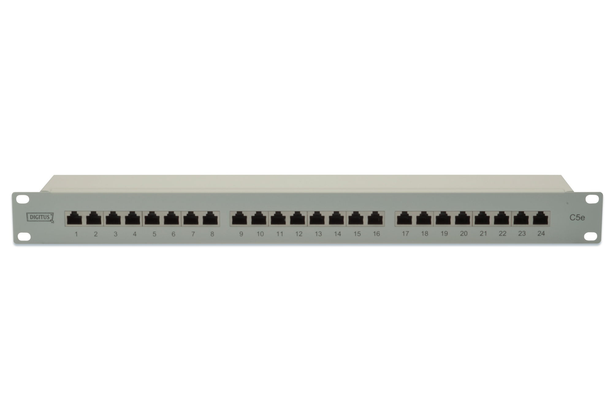 CAT 5e, Klasse D Patch Panel, geschirmt, 24-Port RJ45, 8P8C, LSA, 1HE, Rack Mount, Grau, 482x44x109