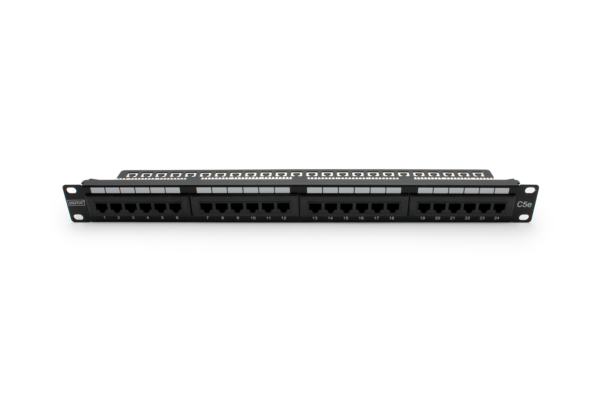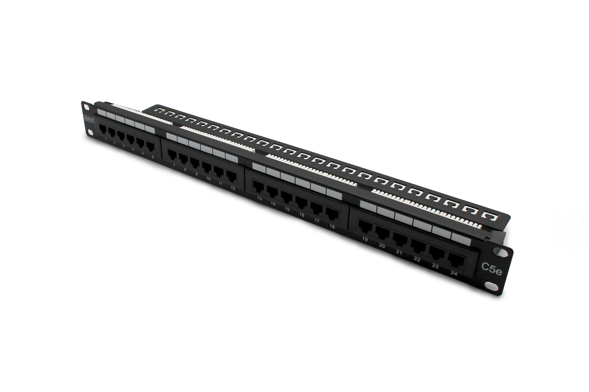 DIGITUS CAT 5e Patch Panel, ungeschirmt, 24-Port RJ45, 8P8C, LSA, 1HE, Rack Mount, sw, 482x44x109