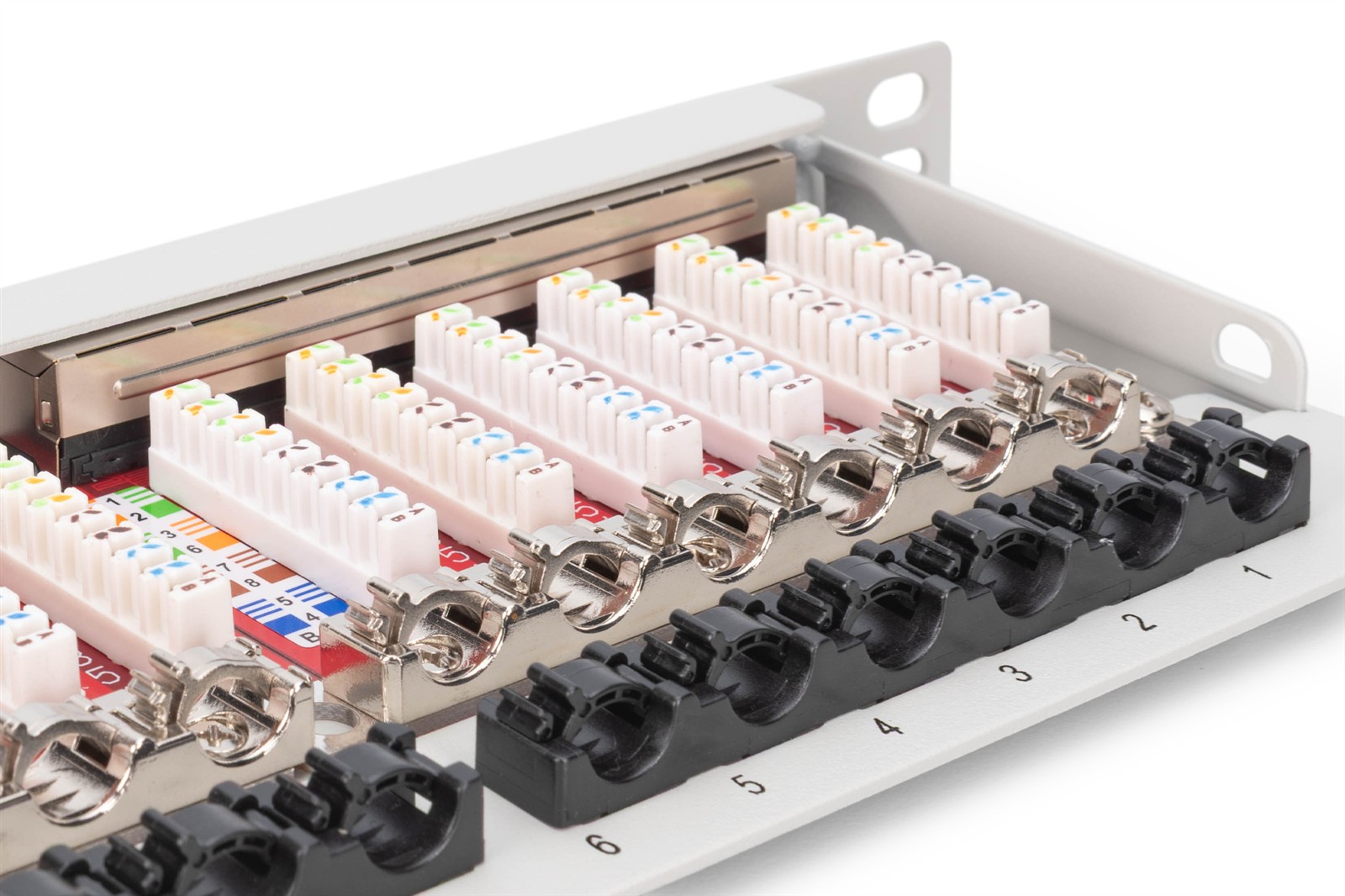 CAT 6A EA Patch Panel, geschirmt, 24-Port RJ45 Staubschutzklappe, 8P8C, 0,5U, Grau RAL 7035