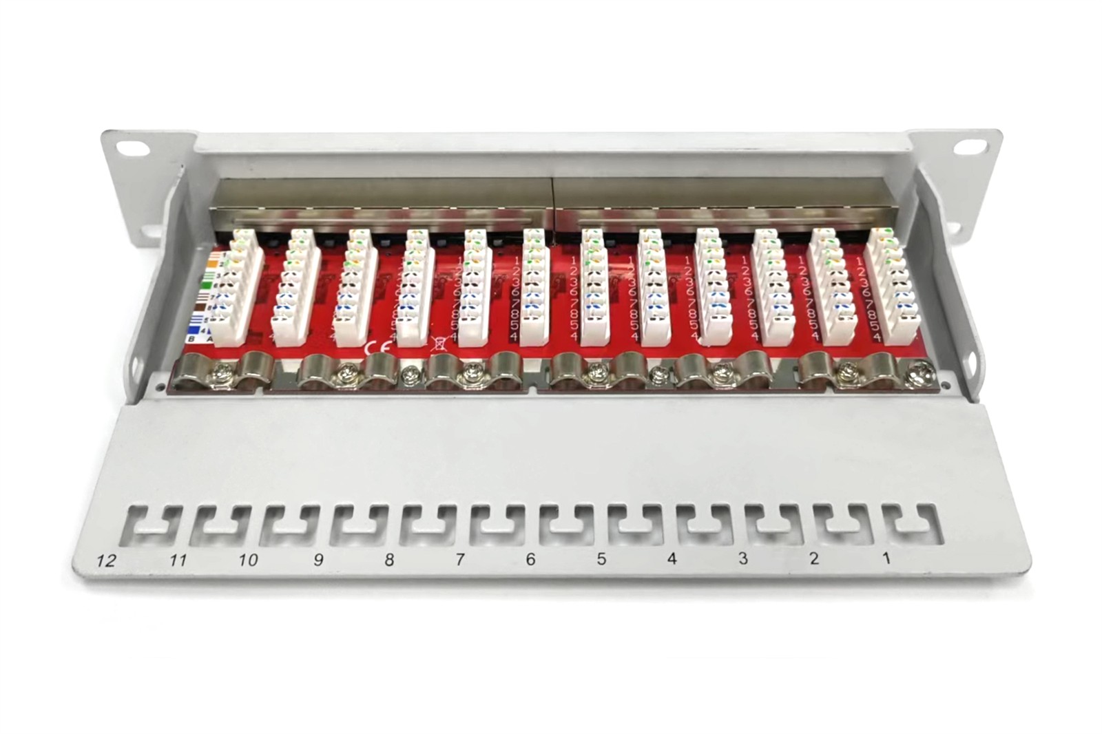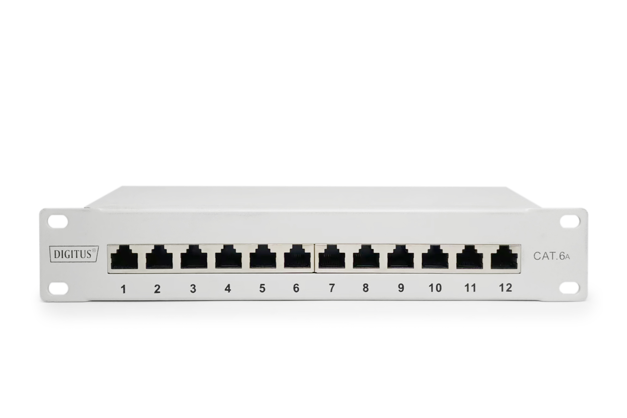 CAT 6A Patch Panel, geschirmt,12-Port 1HE, 10″, Rack Mount, grau RAL 7035