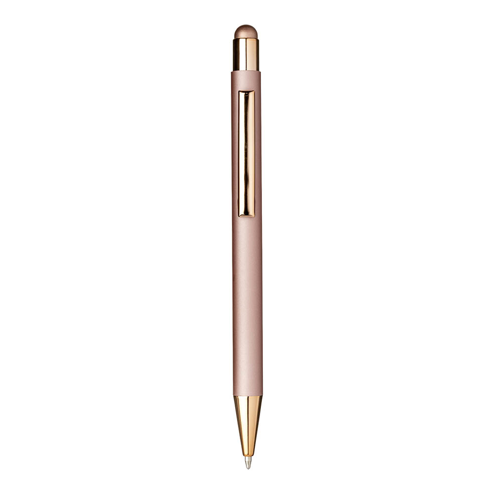 Druckkugelschreiber aus gummiertem Aluminium. Clip und metallische Details in passender Farbe