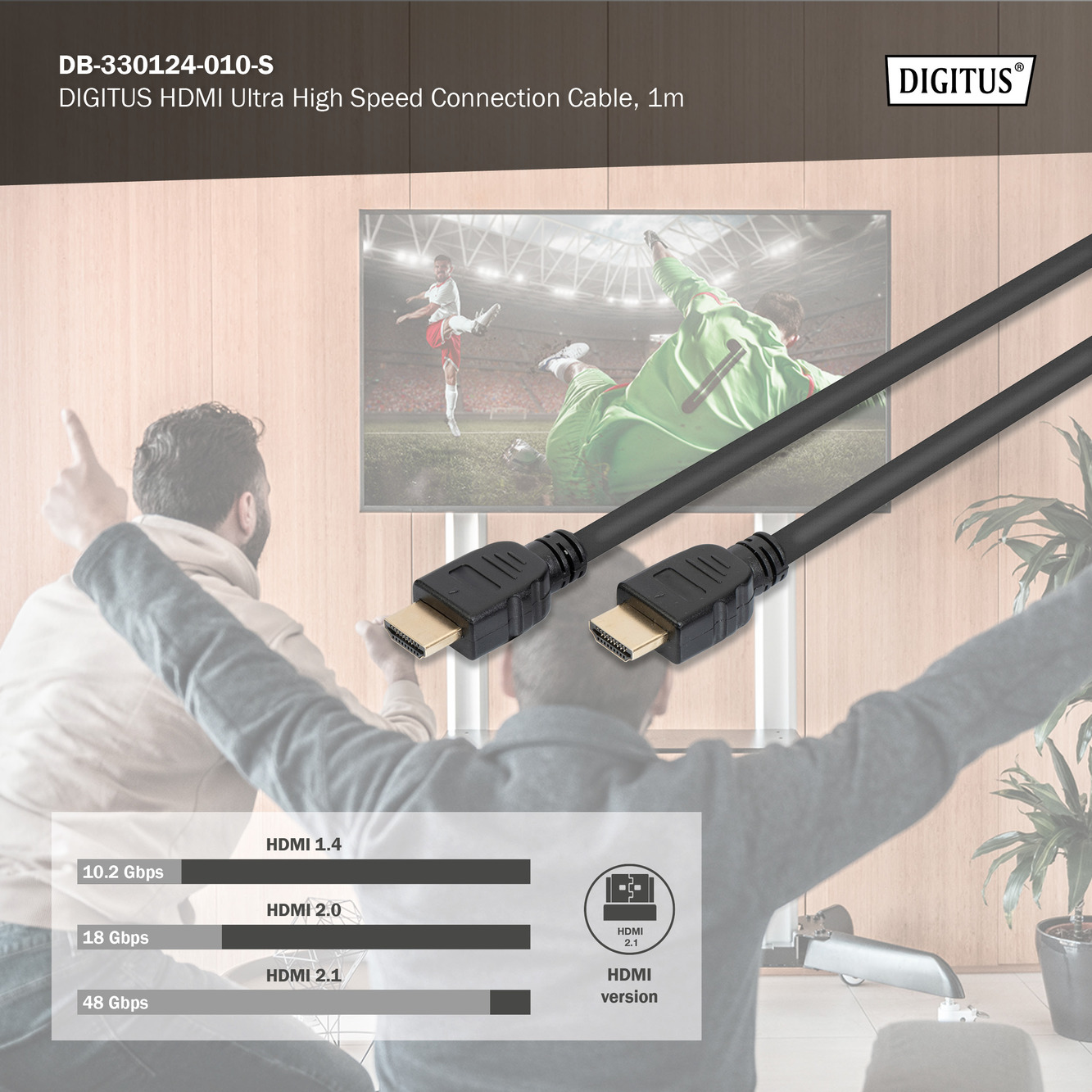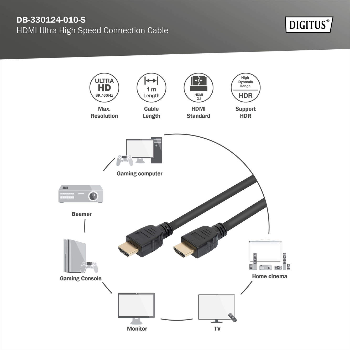 HDMI Ultra High Speed Verbindungskabel, Typ A St/St, 1.0m, m/Ethern, Ultra HD, 8K@60Hz, gold, sw