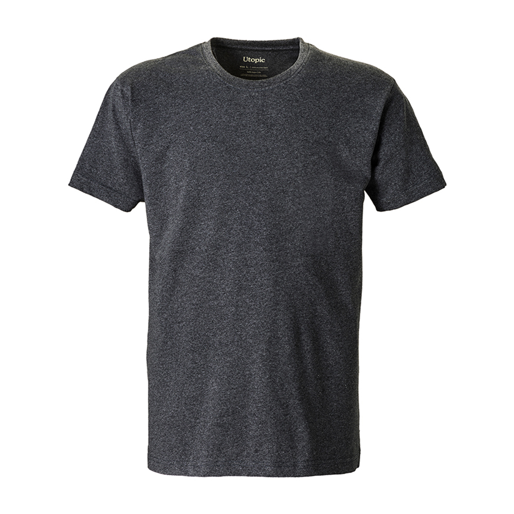 100% regenerierter Single-Jersey-Stoff Unisex-T-Shirt mit kurzen Ärmeln, doppellagiger gerippter Kragen mit Doppelnähten, Verstärkungsband am Hals, Struktur mit Seitennähten. 145 g/m2. 60% recycelte Baumwolle/ 40% recyceltes Polyester