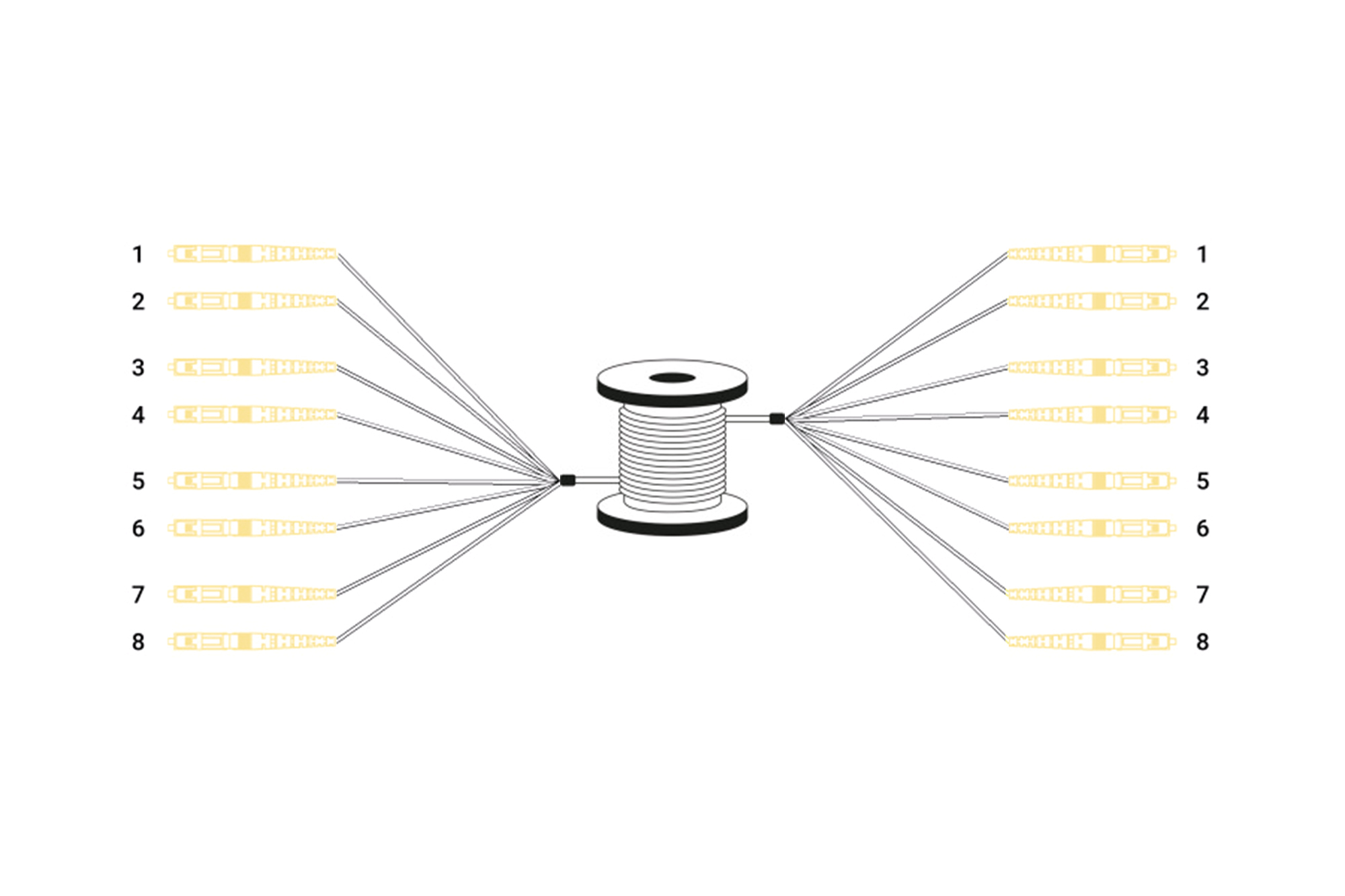 Breakout Kabel 8 Fasern, SM G.657.A1 LC/UPC-LC/UPC, universal, Farbe: schwarz, 75m