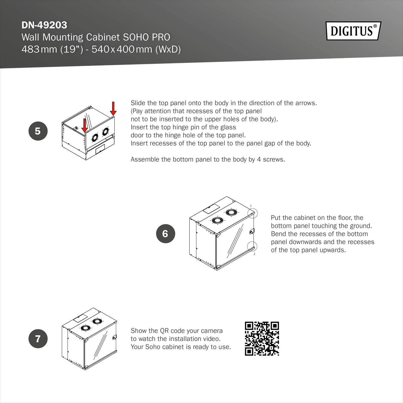 19″ 7HE Wandgehäuse, SOHO Pro 370 x 540 x 400 mm, unmontiert, schwarz