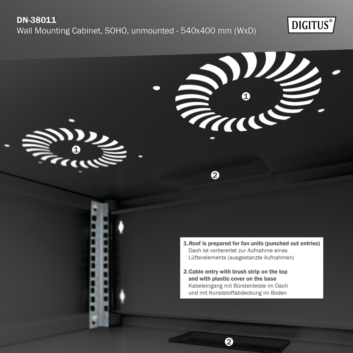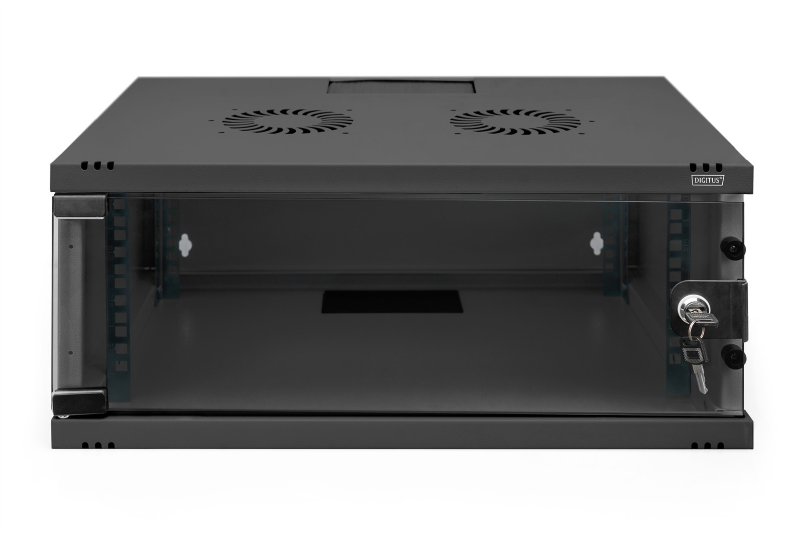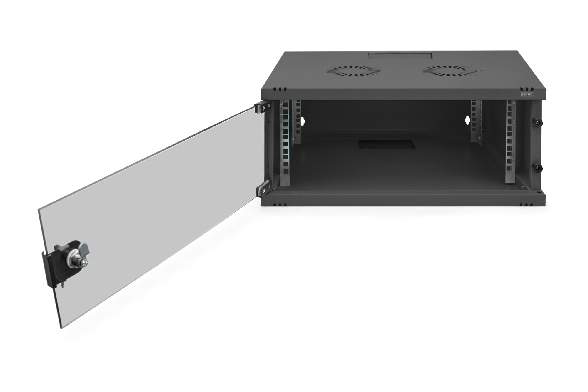 4HE Wandgehäuse, SOHO, unmontiert 241x540x400 mm, Glastür, Schwarz