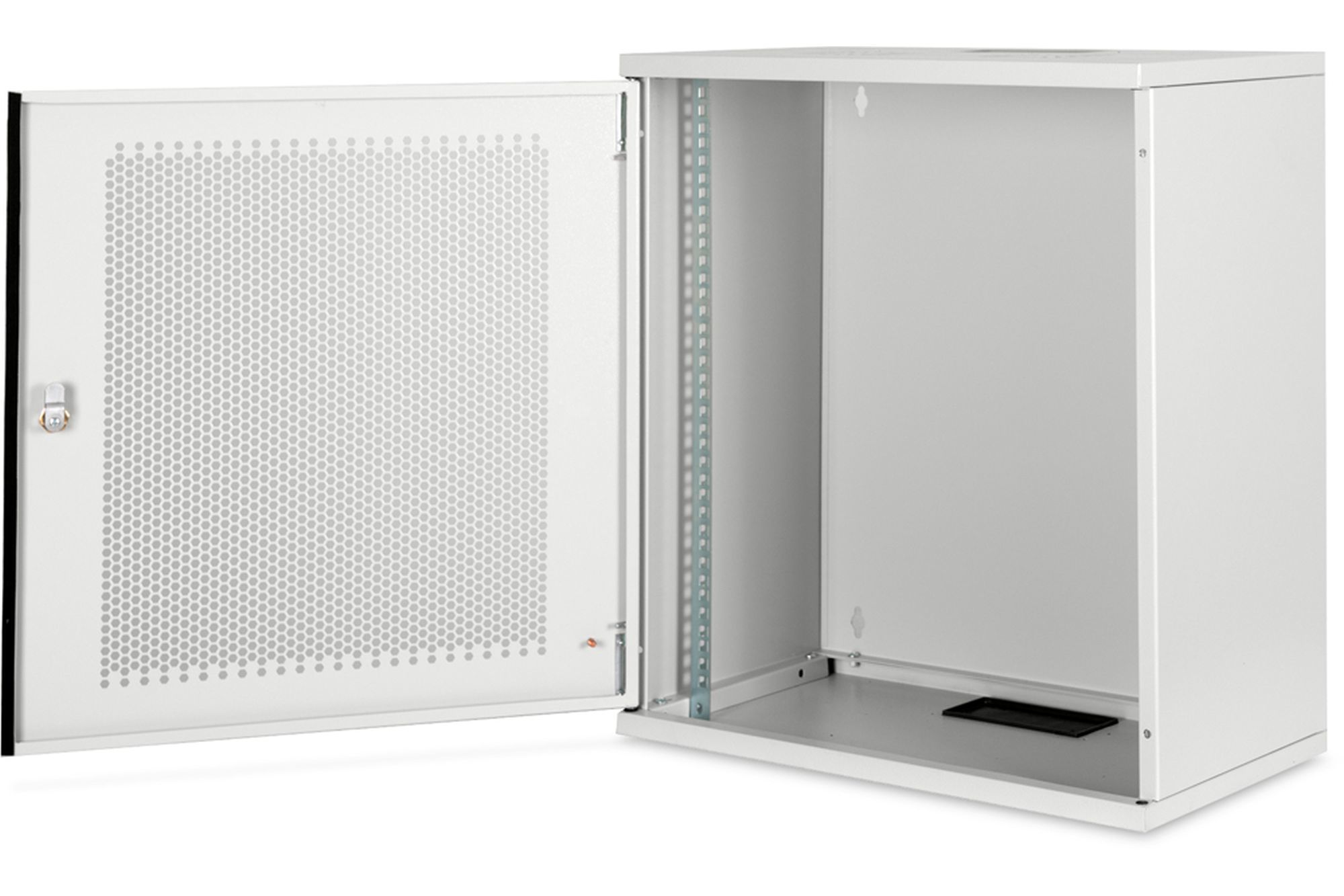 12HE Wandgehäuse, SOHO, unmontiert 595x540x400 mm, perforierte Fronttür, grau
