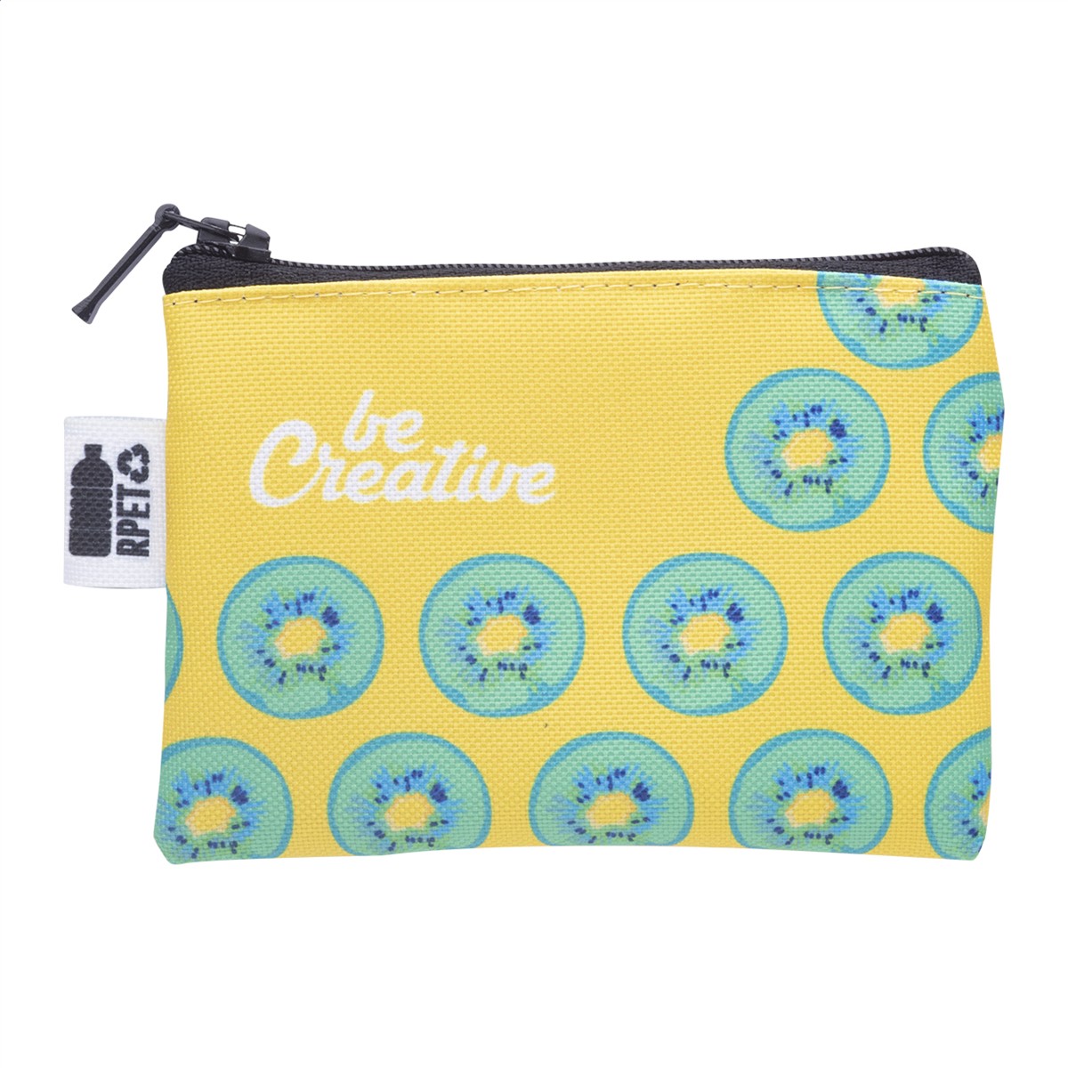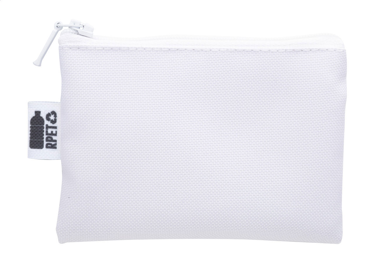 Individuelle Geldbörse mit RFID-Schutz mit Reißverschluss, Material: 600D RPET Polyester. Der Preis ist inkl. Sublimationsdruck und RPET-Label. Mindestmenge: 50 Stk.