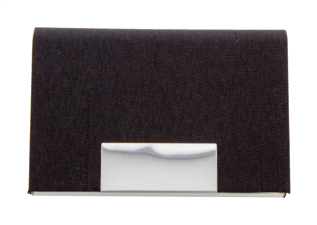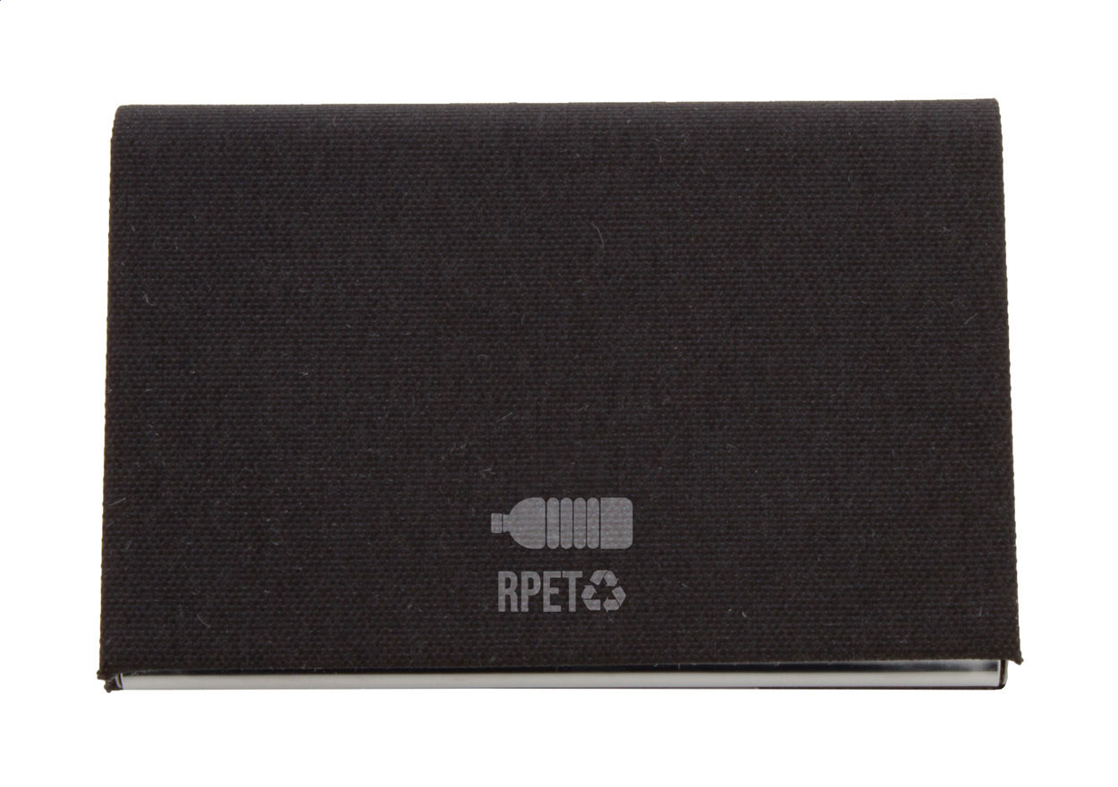 Visitenkartenhalter aus mit RPET-Polyester überzogenem Metall und mit bedruckbarem Metallteil.
