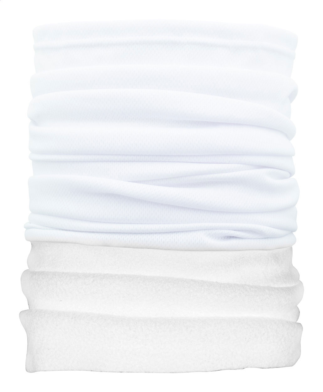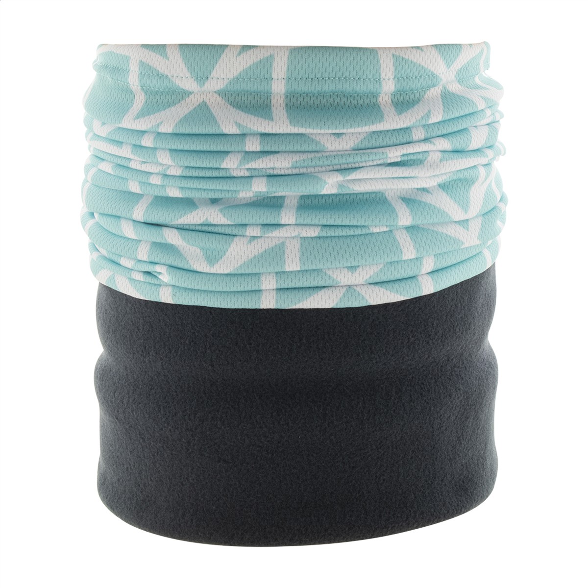 Individueller Multifunktionsschal aus atmungsaktivem und schnell trocknendem Polyester mit farbigem Polarfleece-Halswärmer. Der Preis ist inkl. vollflächigem Sublimationsdruck auf dem Polyesterteil. Material: 100 % Polyester (135 g/m²) und Polarfleece (160 g/m²). Mindestmenge: 100 Stk.
