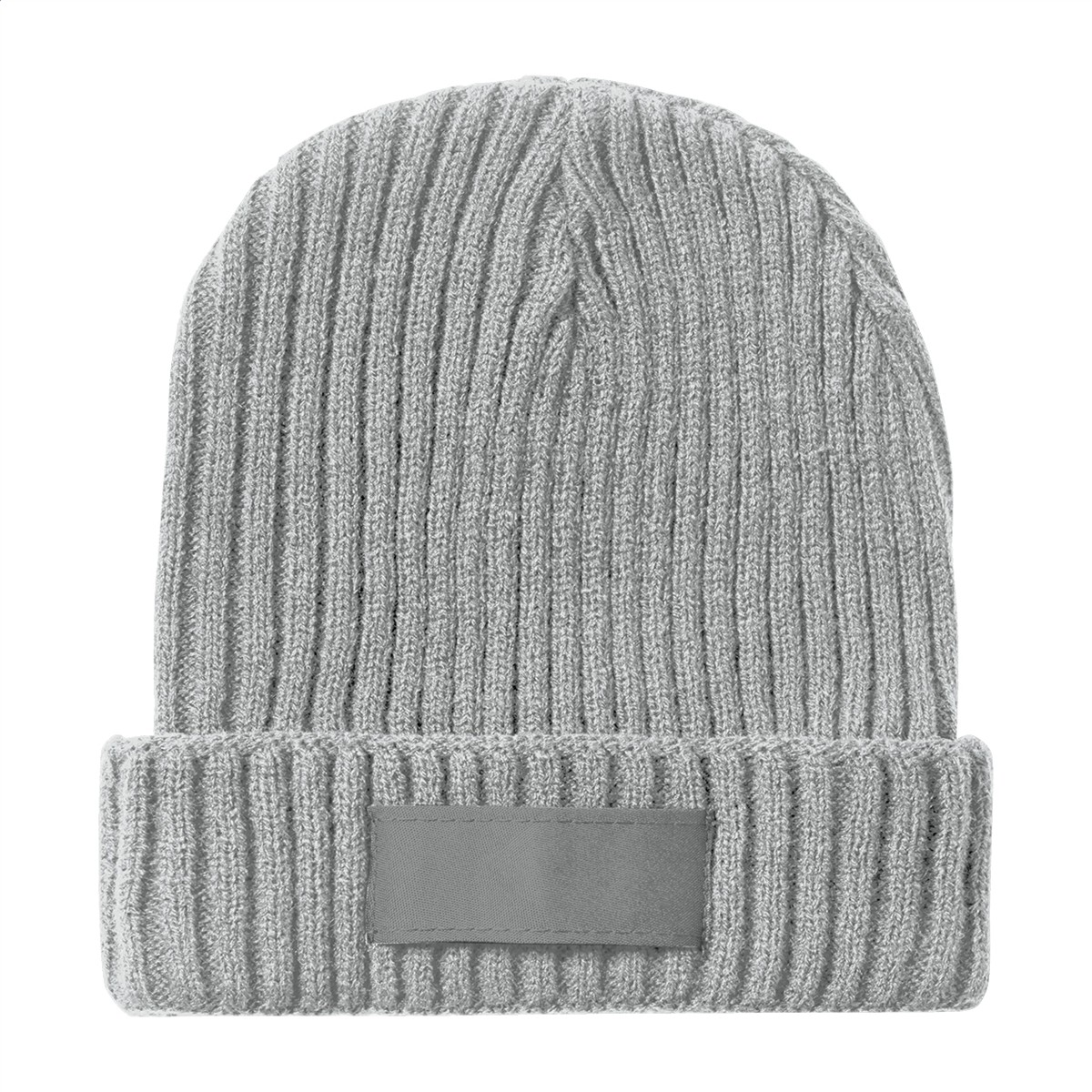 Wintermütze aus Acryl mit bedruckbarem Aufnäher.