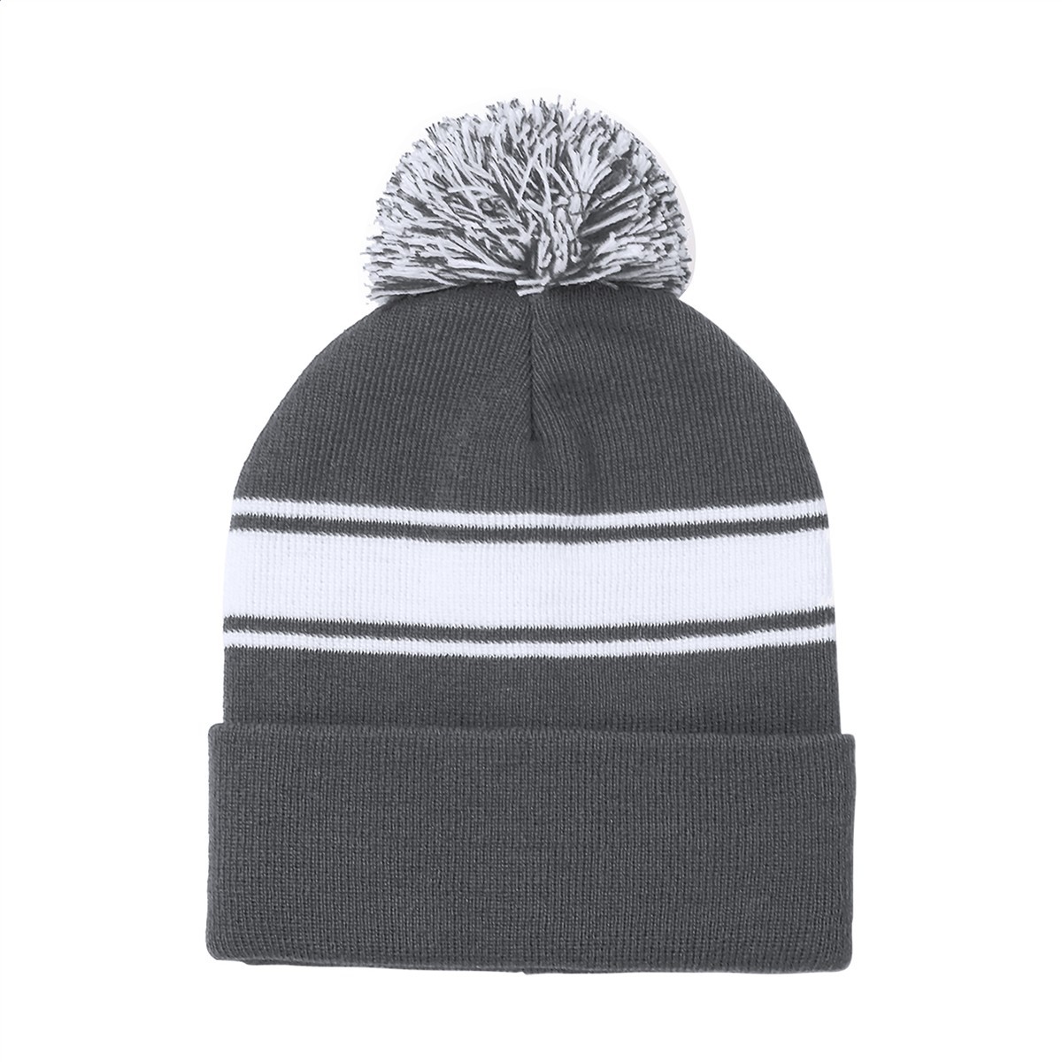 Wintermütze mit Bommel und weißen Streifen, Material: Acryl.