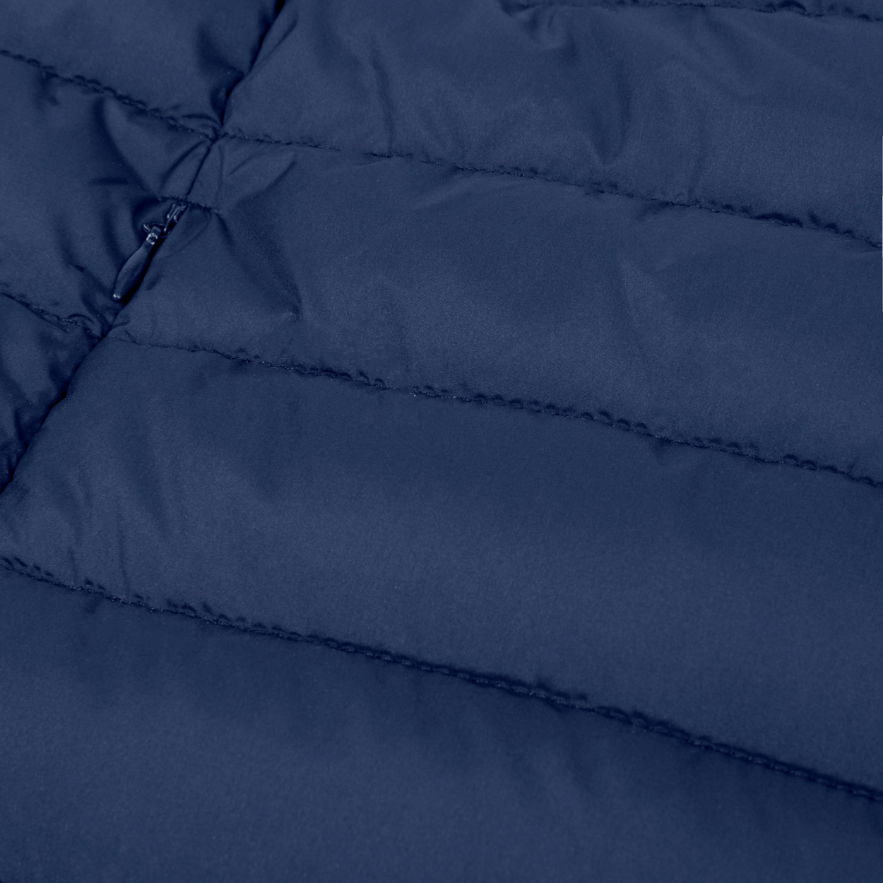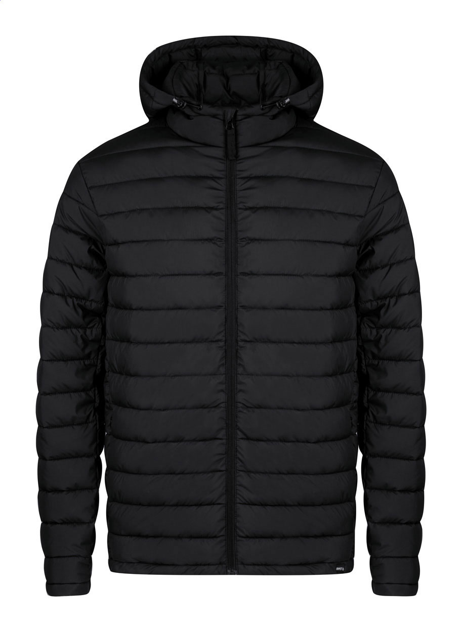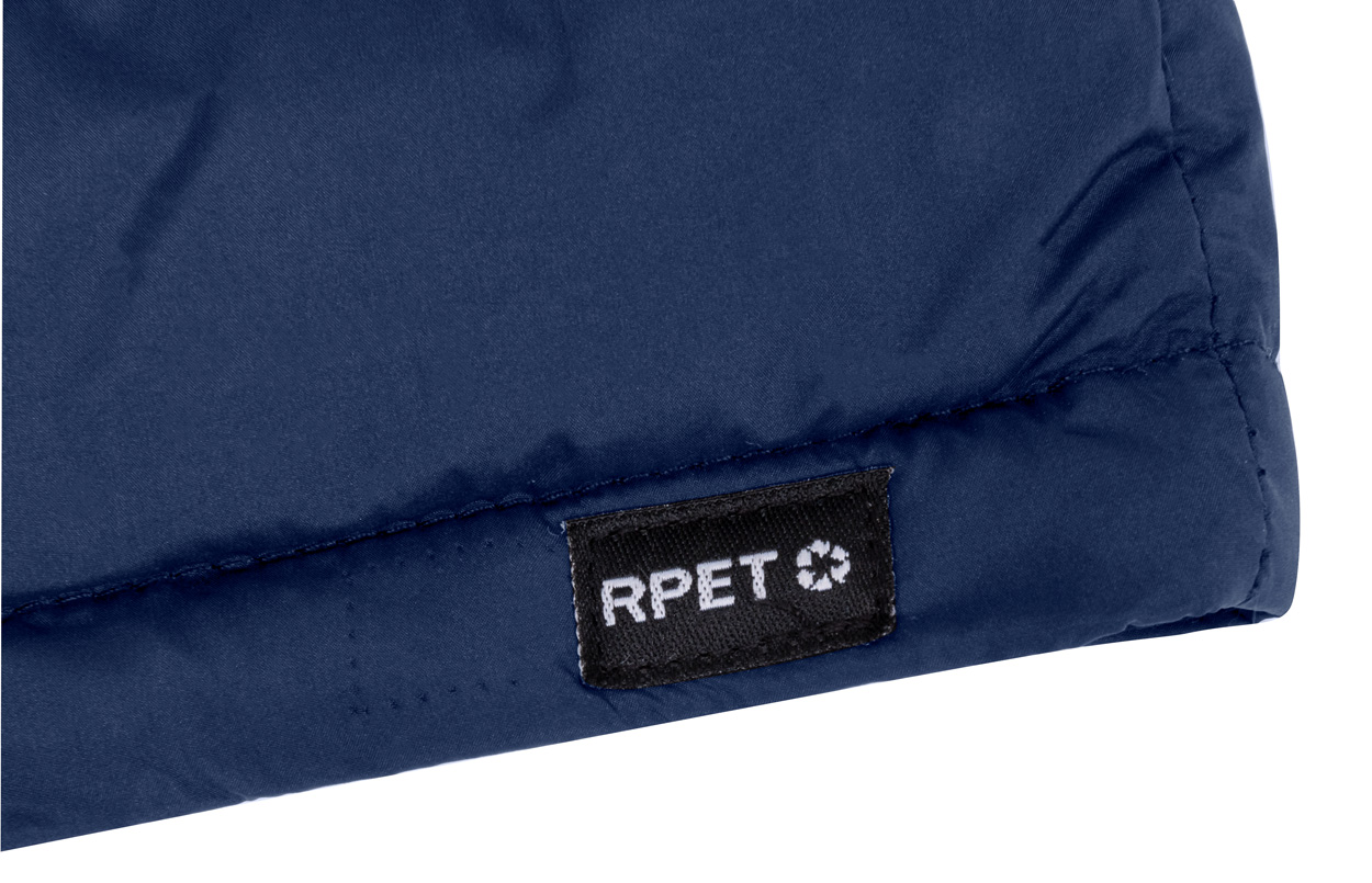 Wind- und wasserabweisende, wattierte Jacke mit Reißverschluss, Seitentaschen mit Reißverschluss und verstellbarer Kapuze. Mit Beutel aus RPET-Polyester. Material: 100 % RPET-Polyester. Mit RPET-Label.