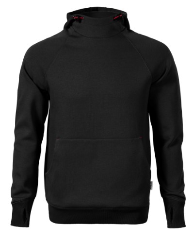 gerader Schnitt mit Seitennähten, Kapuze mit Futter, verstellbar durch elastischen Kordelzug, Innenseite des Kragens durch ein gewebtes Kontrastband versäubert , doppelt abgesteppte Raglanärmel, aufgesetzte Kängurutasche, 2 versteckte Reißverschlusstaschen, unterer Rand, Ärmelmanschetten und Kragensaum aus 2:2 Rippstrick mit 5 % Elastanzugabe, Bündchen mit Loch für den Daumen, Kontrastdetails