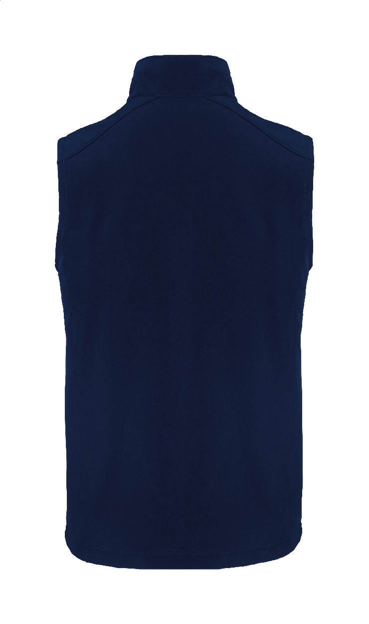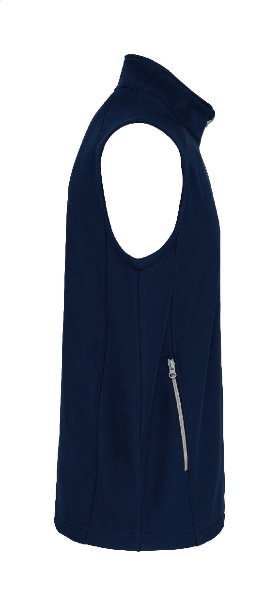 Doppellagige Softshell-Weste mit Reißverschluss und seitlichen Reißverschlusstaschen. Mit kontrastfarbenen Reißverschlüssen. Wasserabweisendes Material. Außen: 95 % Polyester und 5 % Elasthan. Innen: 100 % Polyester-Micro-Polarfleece. 300 g/m². Marke: Kariban.