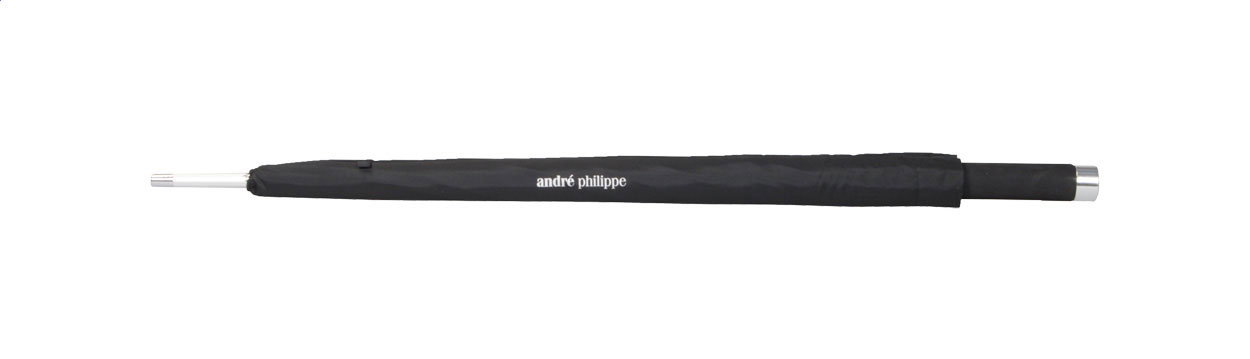 Automatischer Stockschirm mit 8 Segmenten, Aluminiumstock, EVA-Schaumgriff und Etui (mit Markenaufdruck). Material: 190T Pongee. Marke: André Philippe.