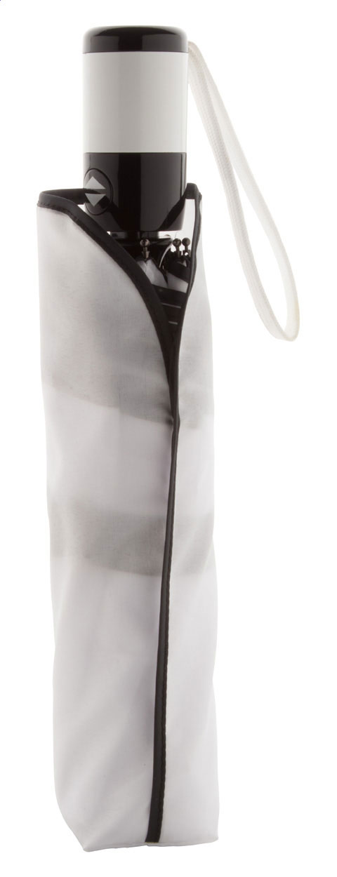Vollautomatischer Windproof-Taschenschirm mit 8 Segmenten. Metallstock, Metall/Fiberglas-Speichen und farblich abgestimmtem Etui. Bespannung: 190T Polyester-Pongee.