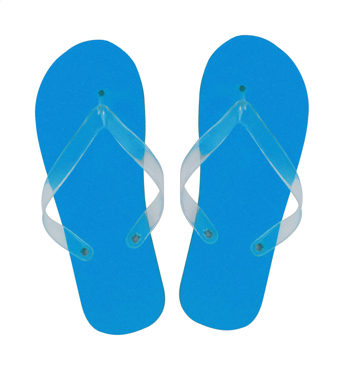 Strandpantoffeln mit transparentem Riemen. Material: recycelte EVA-Sohle+PVC-Riemen.
