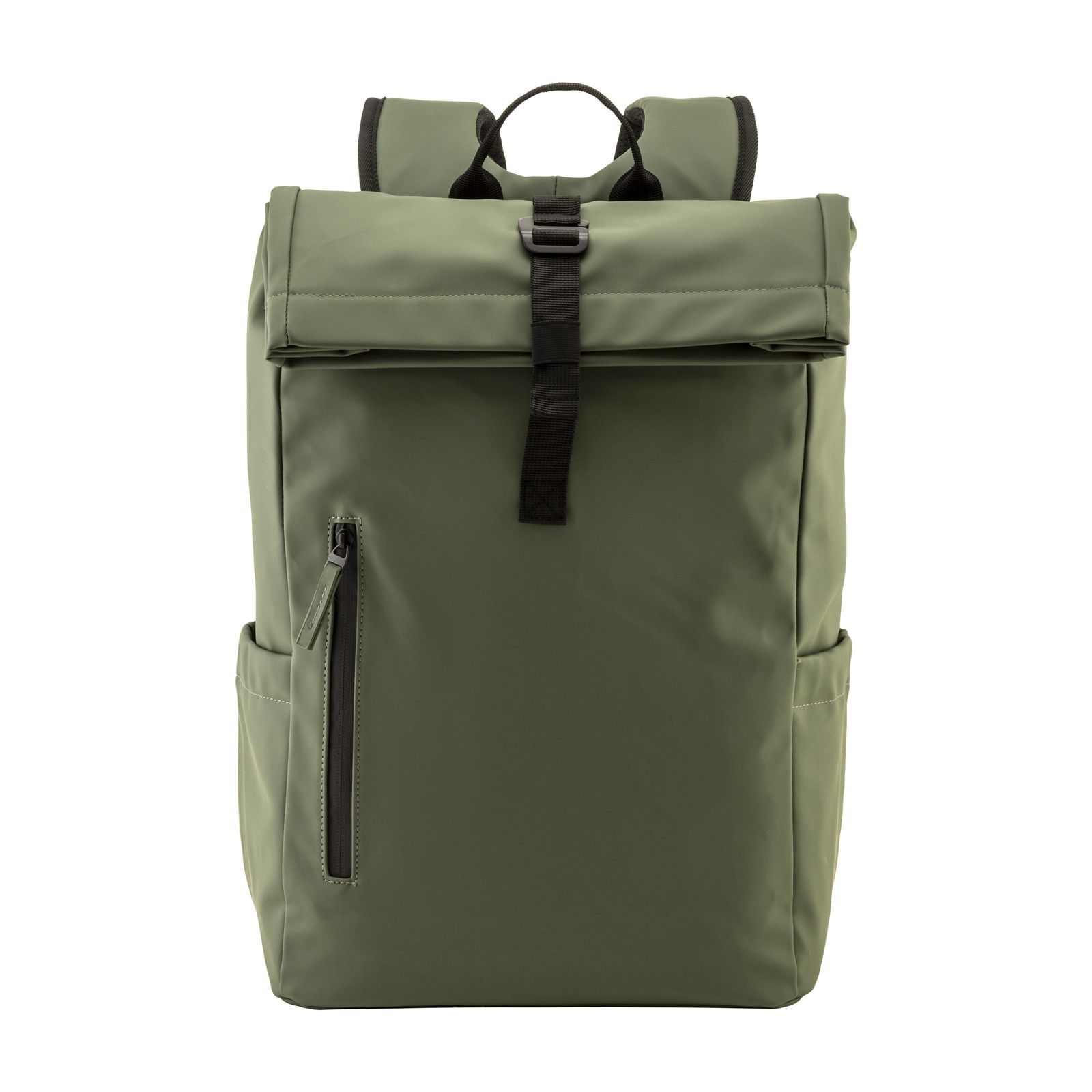 Wasserfester Rucksack aus weichem PU (15″). Gepolsterte Rückentasche für das Notebook. Großes Hauptfach, Reißverschlusstasche vorne und externe Flaschentaschen. Gepolsterte Rücken- und Schultergurte mit atmungsaktivem Material