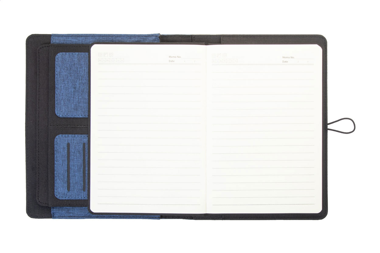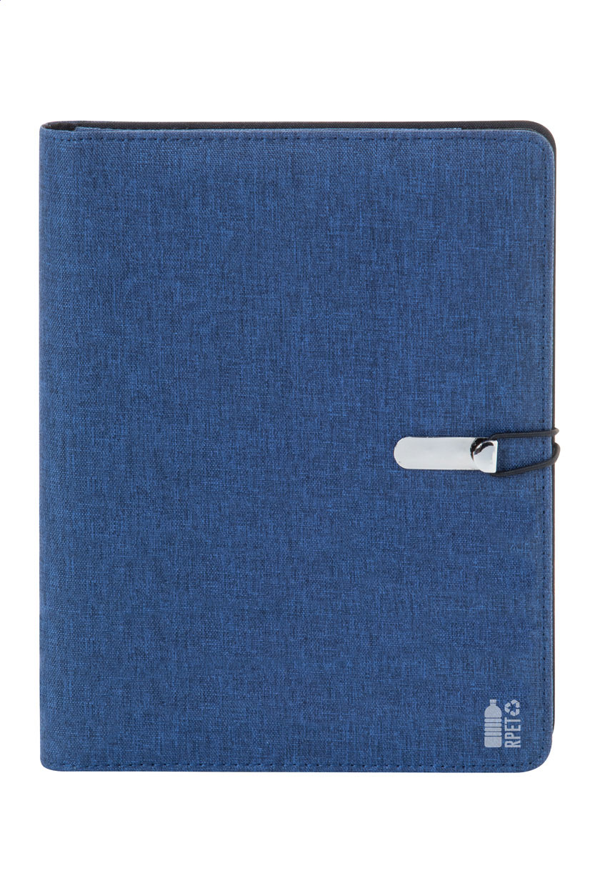 Dokumentenmappe im A5-Format aus 300D RPET-Polyester mit Notizblock mit 64 linierten Blättern und mehreren Organizer-Innentaschen.