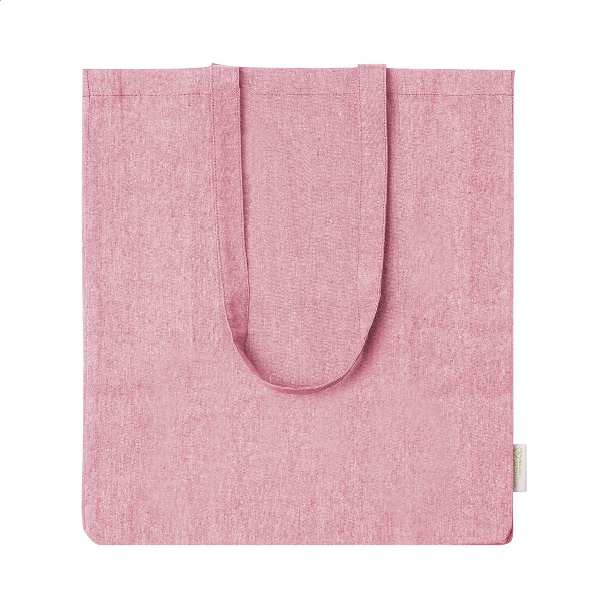 Einkaufstasche mit Seitenfalte aus recycelter Baumwolle und langen Henkeln. Material: 100 % recycelte Baumwolle, 140 g/m². MIt Label Recycelte Baumwolle.