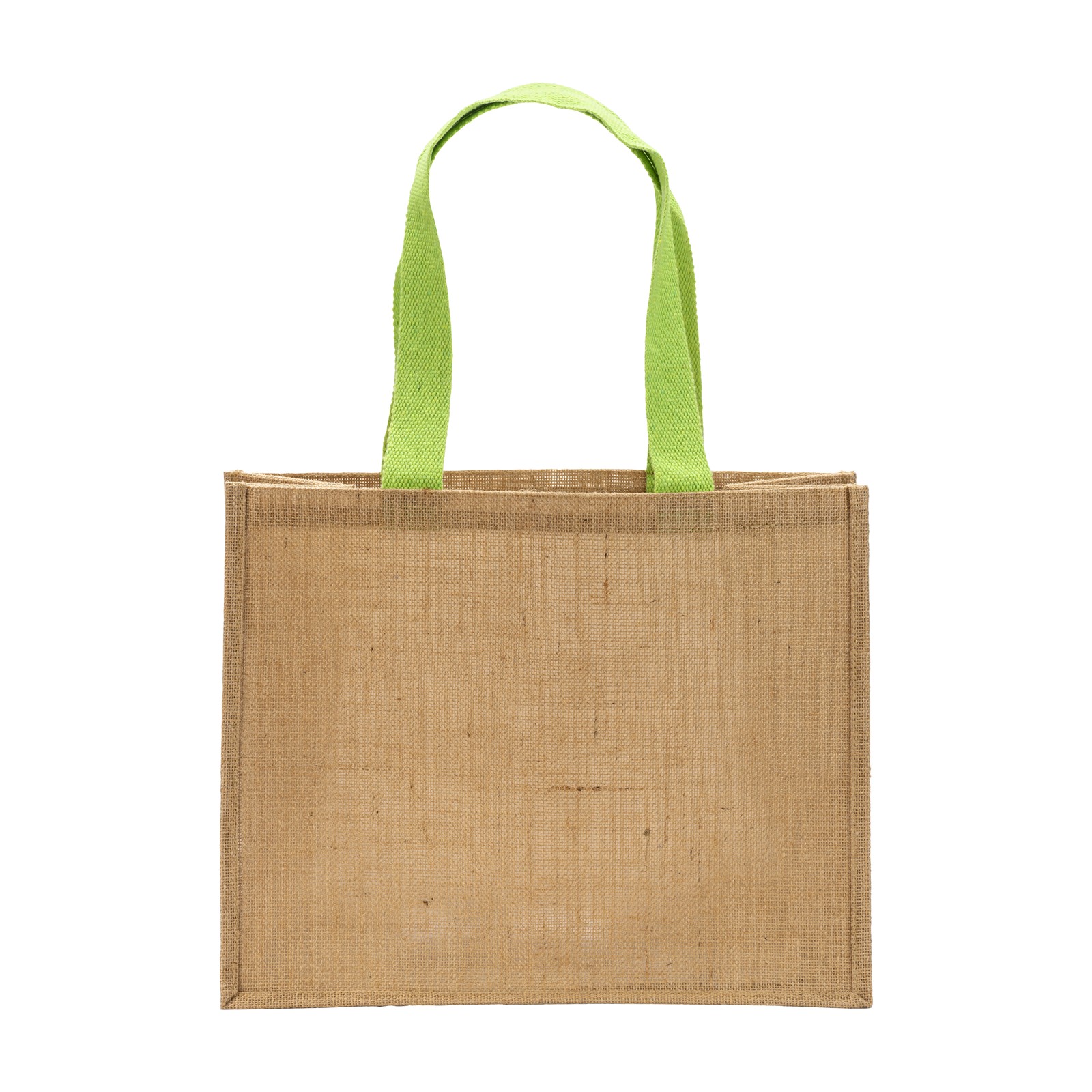 Shopper aus Jute, lange farbige Griffe und Zwickel