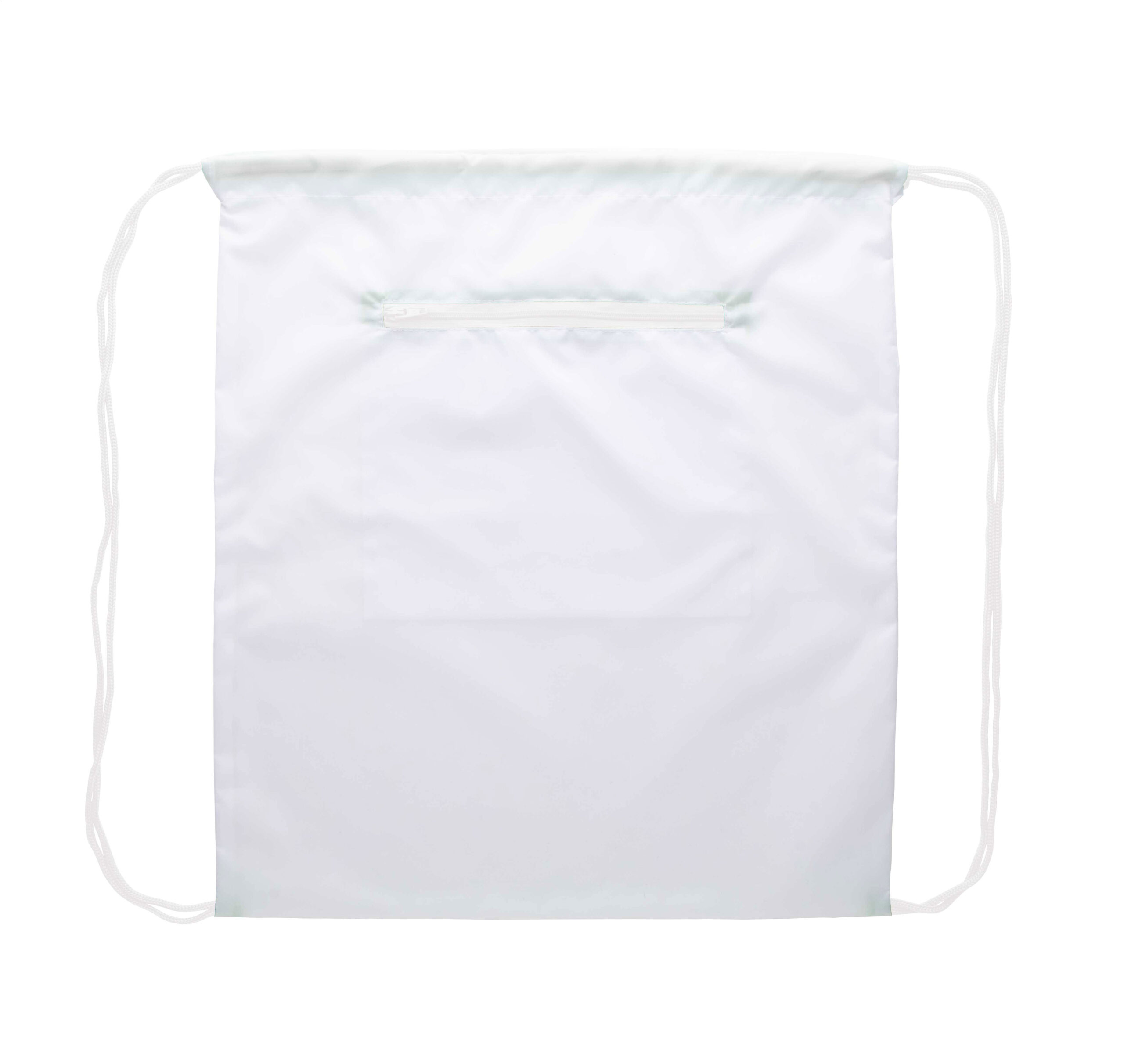 Individueller Turnbeutel mit Zugkordeln, mit Reißverschlusstasche vorne, Material: 190T Polyester. Der Preis ist inkl. vollflächigem Sublimationsdruck. Mindestmenge: 25 Stk.