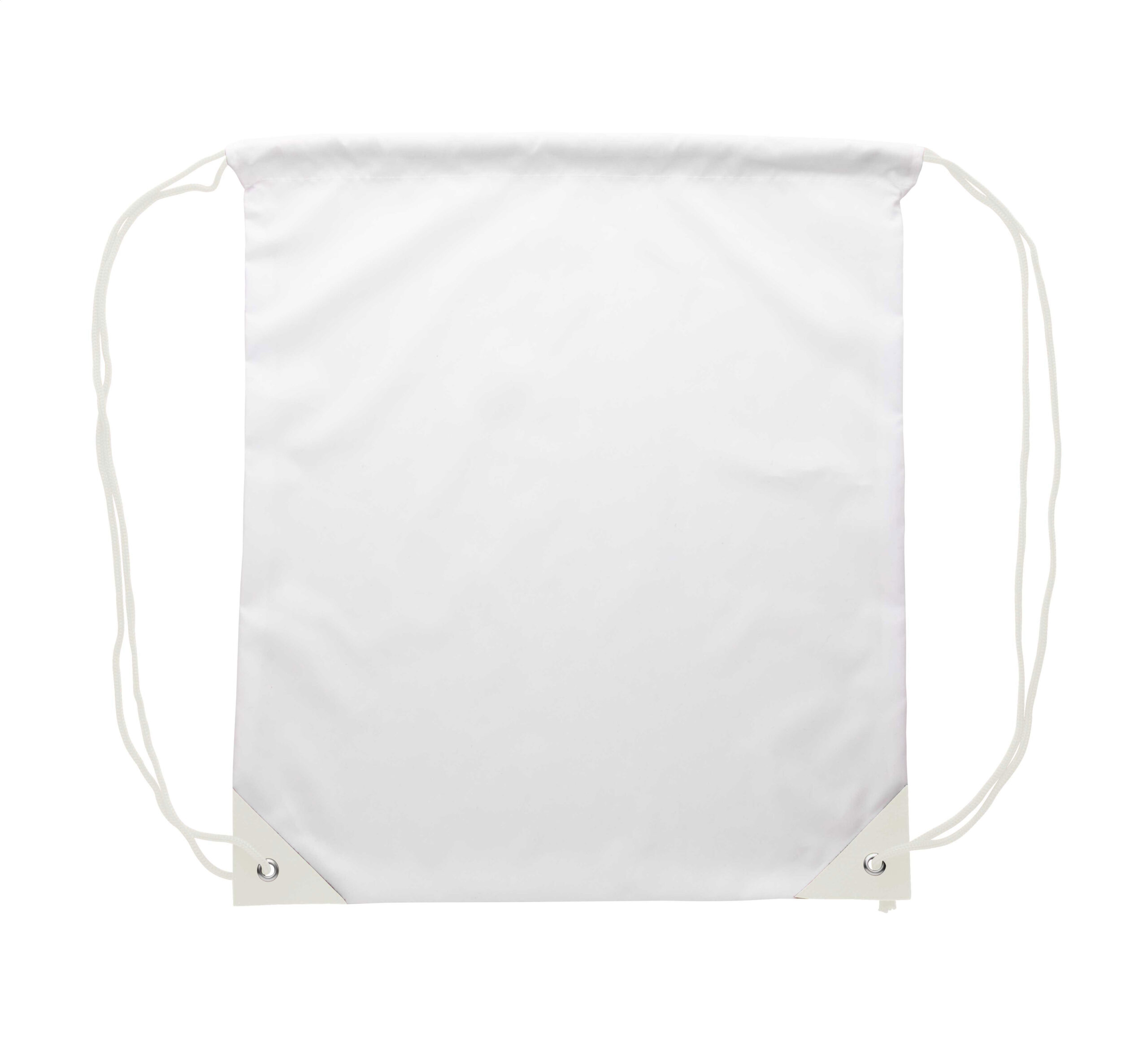 Individueller Turnbeutel mit verstärkten Ecken aus Kunstleder und farblich angepassten Zugkordeln, Material: 190T Polyester. Der Preis ist inkl. vollflächigem Sublimationsdruck. Mindestmenge: 25 Stk.