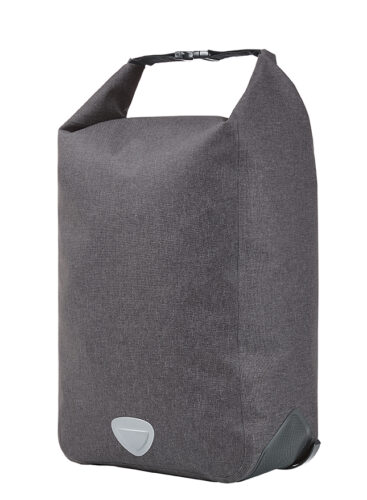 urbane Fahrradtasche mit geräumigem Hauptfach; große Reißverschluss-Innentasche; Rolltop-Verschluss; geschweißte Nähte für zuverlässigen Schutz vor Regenwasser und Nässe; Boden- und Kantenschutz; individuell einstellbare Halterung zur Befestigung am Fahrrad-Gepäckträger mit Drehriegel zur Sicherung und Klettverschluss auf der unteren Taschenrückseite für zusätzliche Fixierung; dekorative Reflektorapplikation; Handgriff