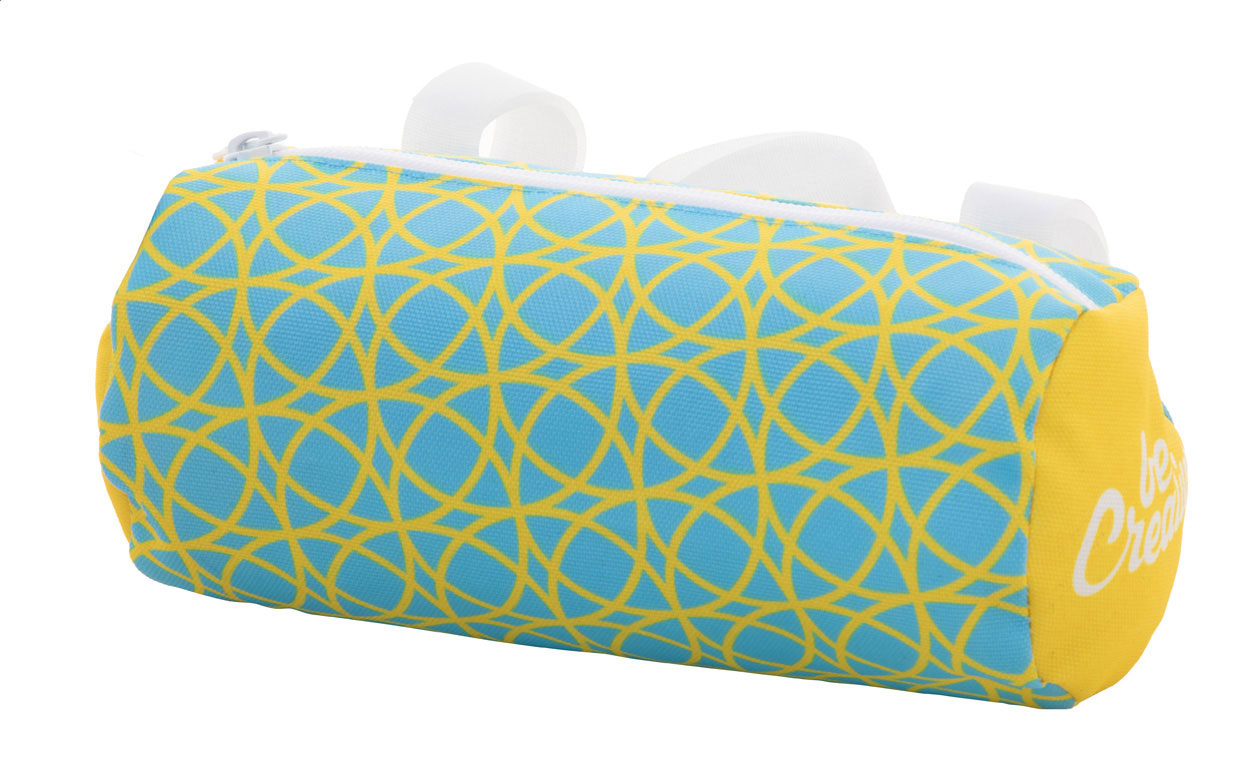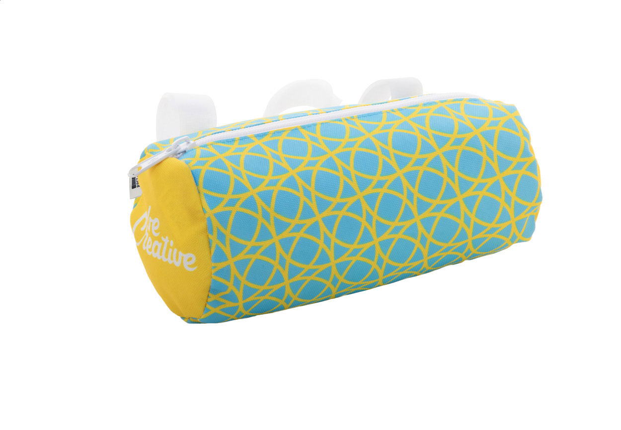 Individuelle Fahrradlenkertasche aus 600D RPET-Polyester mit Reißverschluss und einstellbaren Klettverschlussriemen. Der Preis ist inkl. vollflächigem Sublimationdruck. Mit RPET-Label. Mindestmenge: 25 Stk.