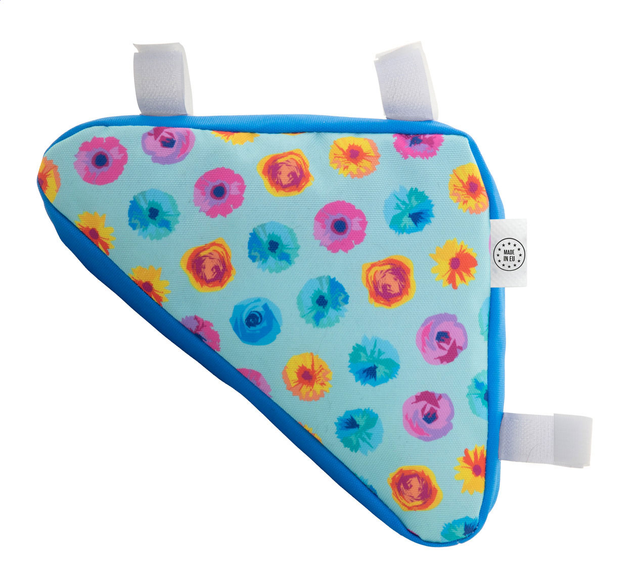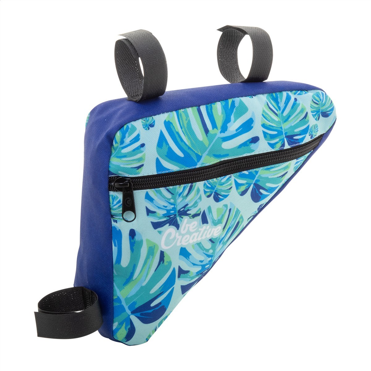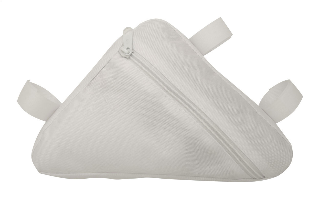 Individuelle Fahrradrahmentasche aus 600D RPET-Polyester mit Reißverschluss und einstellbaren Klettverschlussriemen. Der Preis ist inkl. vollflächigem Sublimationdruck. Mit RPET-Label. Mindestmenge: 25 Stk.
