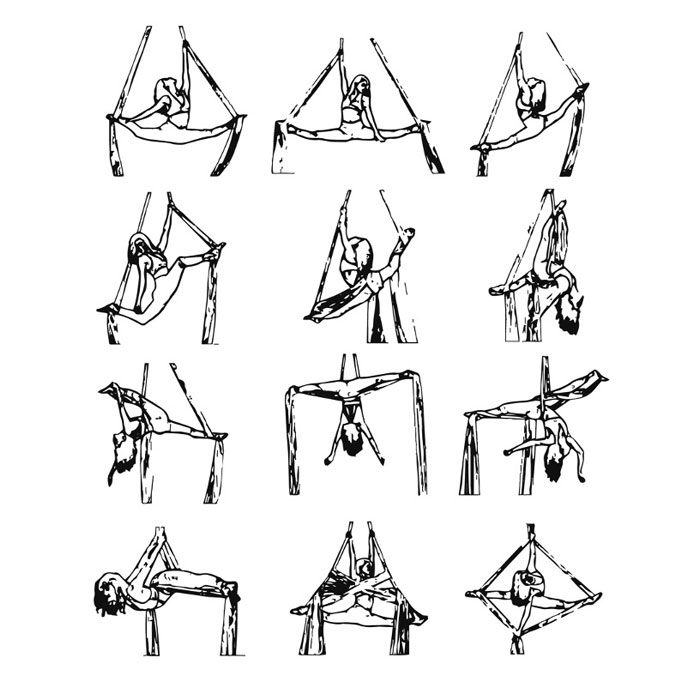 Faltbare Yoga/Pilates-Hängematte aus softem 210D Nylon. Lieferung inkl. Verlängerungsgurten, Stahlkarabiner, Schaumstoffgriffen, Deckenhaken und Schrauben im Beutel. Max. Tragkraft 200 kg.