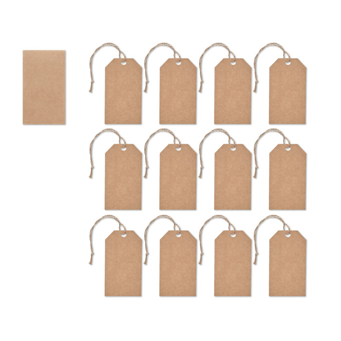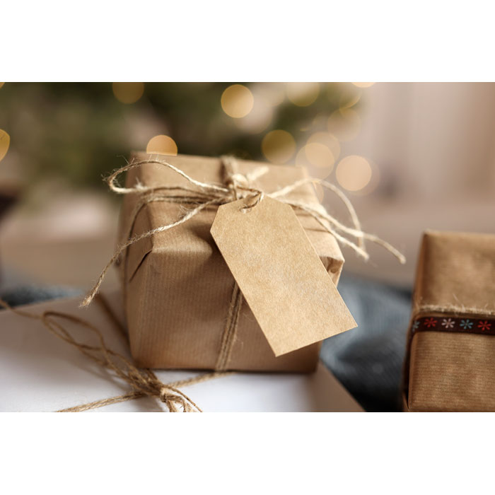 Set mit 12 Geschenkanhängern aus Kraftpapier (350 g/m²) mit Jutekordel. Lieferung in einer Geschenkbox aus Kraftpapier.