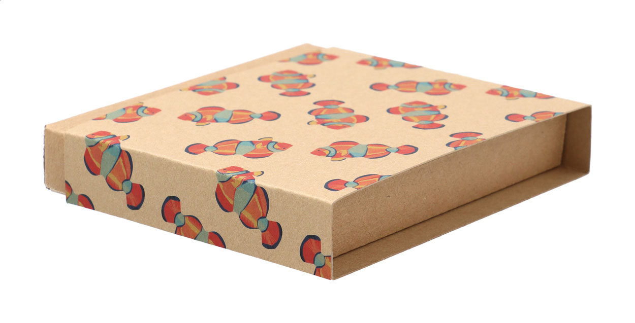 Individueller vollfarbig bedruckter Pappschuber aus Kraftpapier. Mindestmenge: 50 Stk.