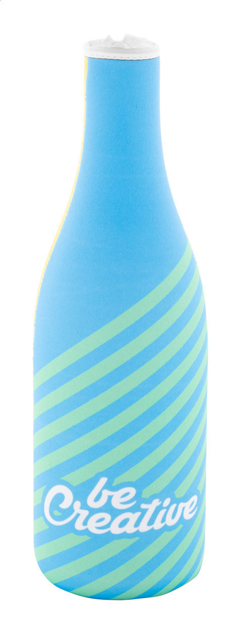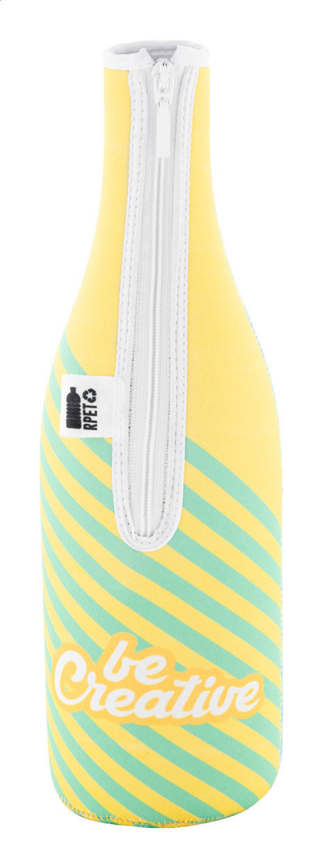 Individuelle RPET-Neopren-Kühlboxhülle mit Reißverschluss für Wein- oder Sektflaschen. Mit vollflächigem Sublimationsdruck. Mindestmenge: 25 Stk.