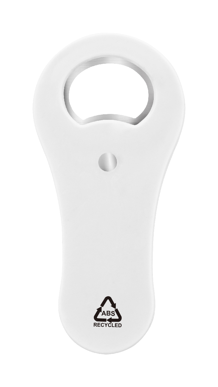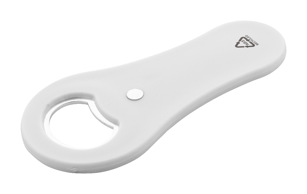 Flaschenöffner aus recyceltem ABS-Kunststoff mit Kühlschrankmagnet.