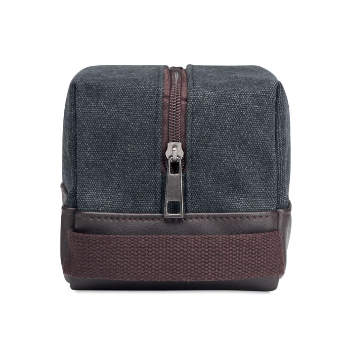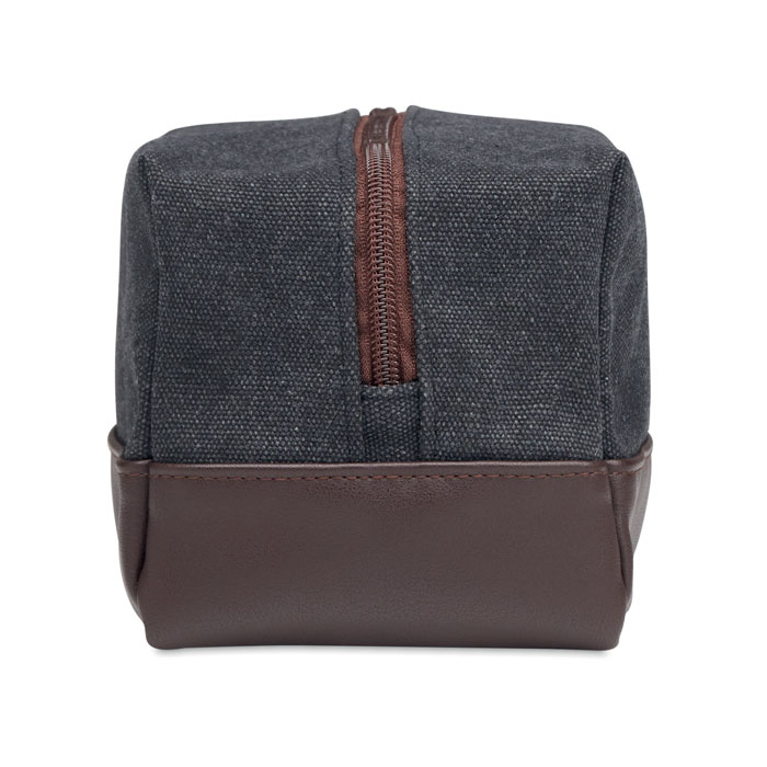 Kosmetiktasche aus hochwertigem gewaschenem Canvas 450 g/m² mit Reißverschluss. Boden sowie Schlaufe aus recyceltem PU. Futter aus RPET 210D.