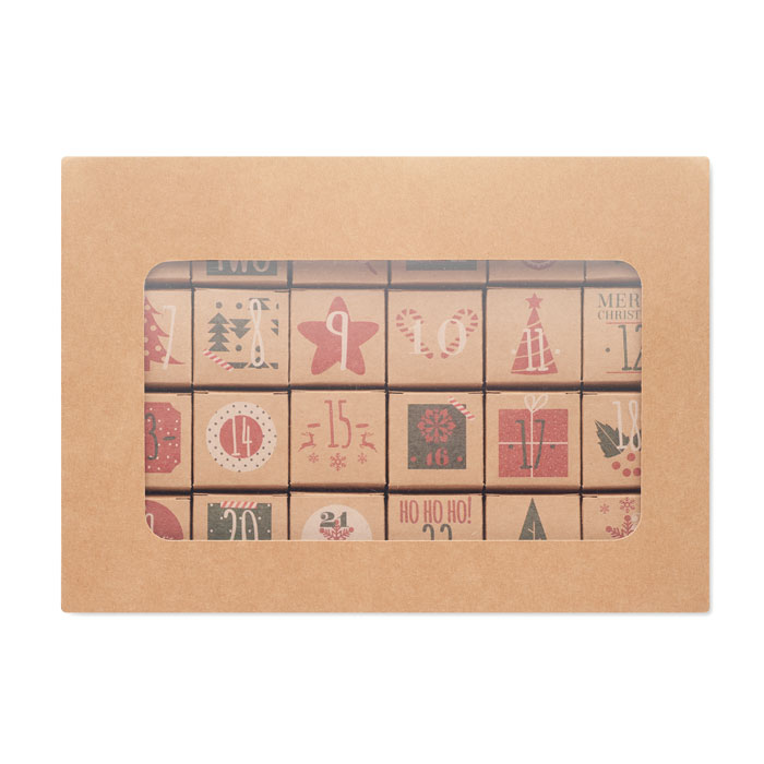 Adventskalender-Set mit 24 kleinen Schachteln zum Selbstbefüllen. Kraftpapier 300 g/m². Ohne Inhalt.