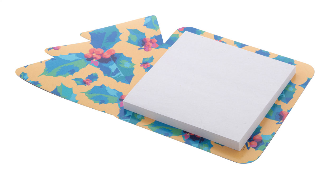 Individueller Weihnachts-Kühlschrankmagnet mit Haftnotizblock. Beinhaltet 50 Haftnotizzettel aus recyceltem Papier (75xz75mm). Mindestmenge: 50 Stk.