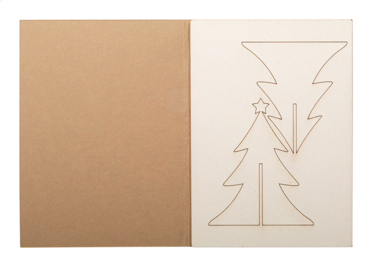 Individuelle Weihnachtskarte mit Weihnachtsdeko-Puzzle aus Sperrholz. Der Preis ist inklusive Vollfarbdruck auf beiden Seiten der Karte. Inkl. C6-Briefumschlag. Mindestmenge: 100 Stk.