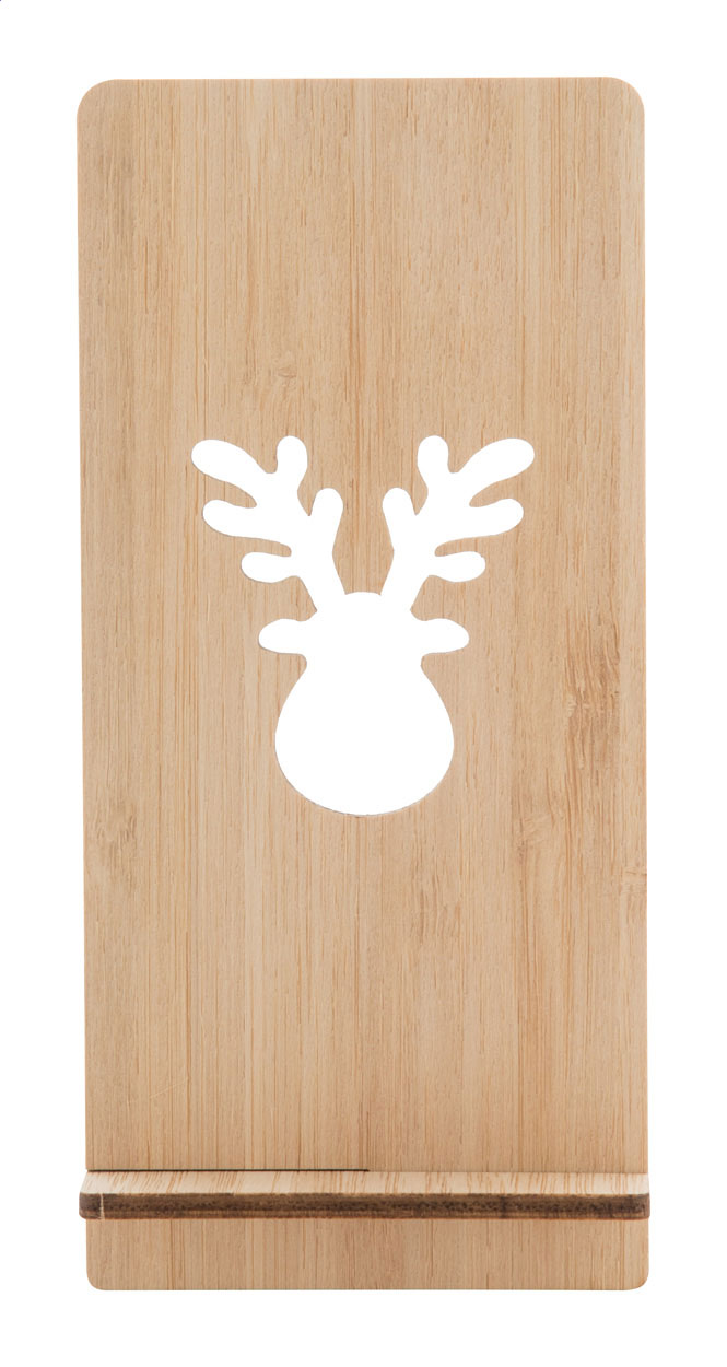 Tisch-Handyhalter aus Bambussperrholz mit gestanztem Weihnachtsmotiv. Die Lieferung erfolgt flach verpackt.