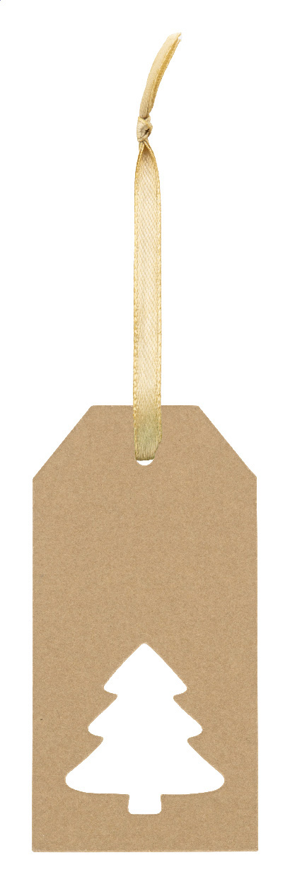 Individueller, vollfarbig bedruckter Weihnachtsgeschenkanhänger aus Papier mit gestanztem Weihnachtsmotiv und goldener Schleife. Der Preis ist inkl. einseitigem Digitaldruck. Mindestmenge: 100 Stk.