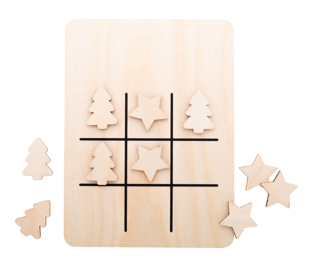 Tic-Tac-Toe-Spiel in weihnachtlichem Design aus Birkensperrholz mit 10 Spielsteinen.