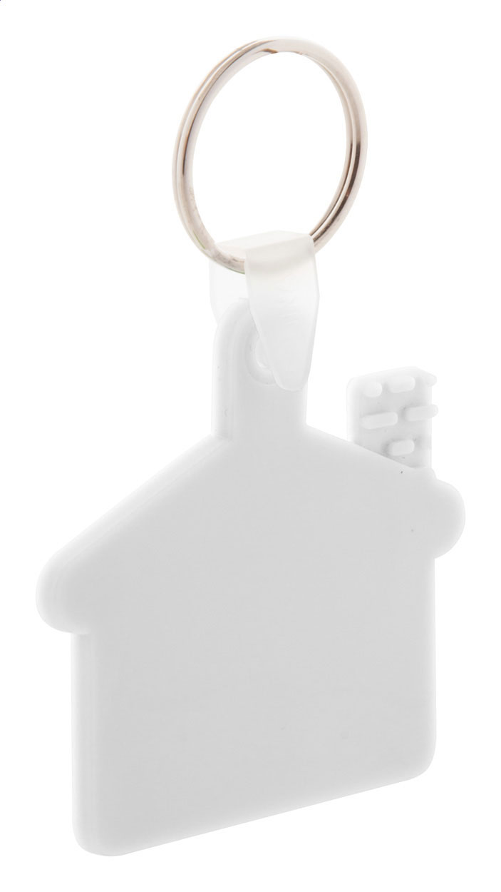 Schlüsselanhänger in Hausform mit Metall-Schlüsselring.