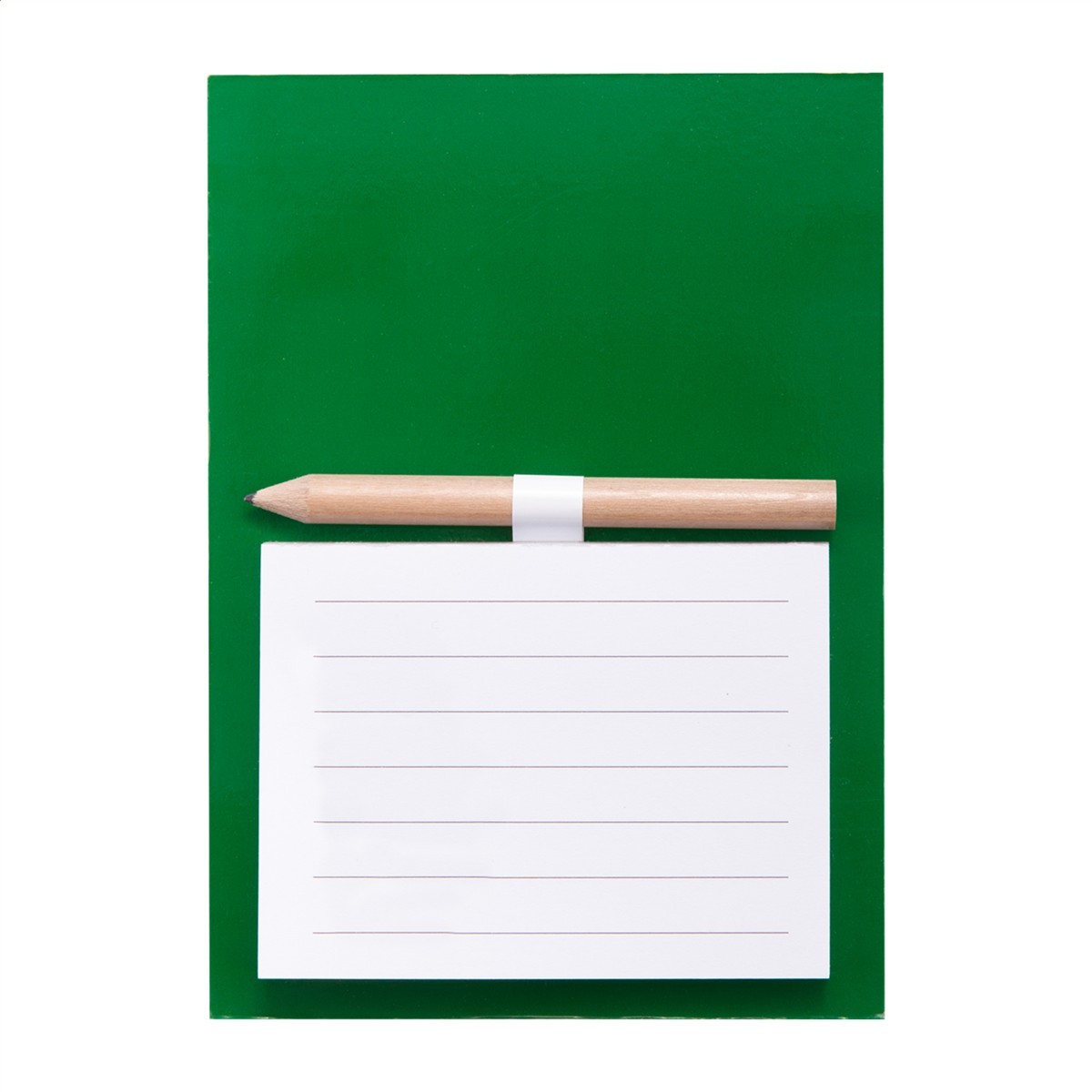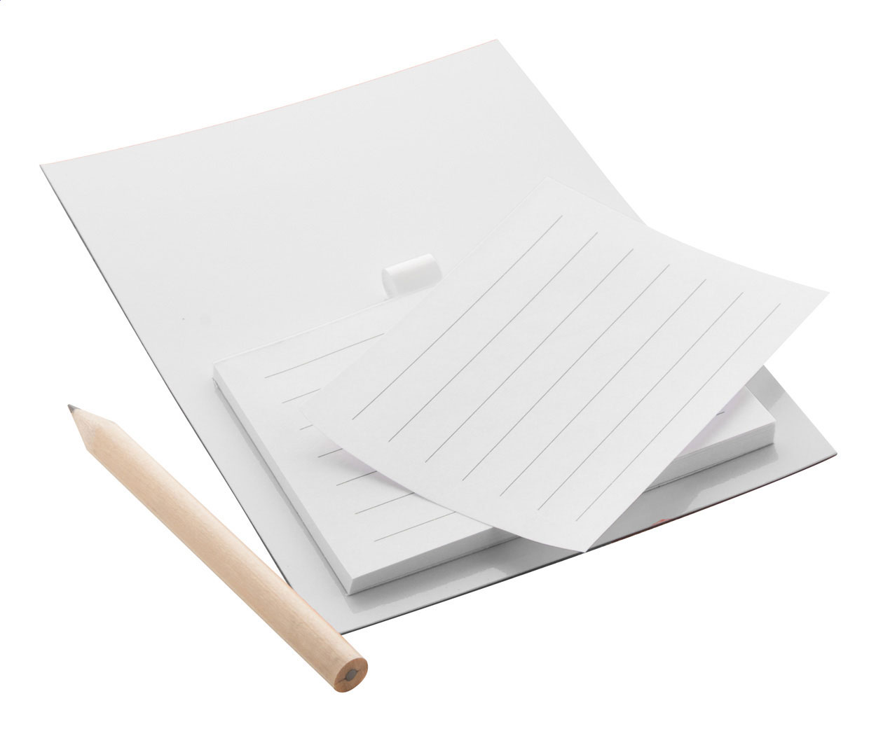 Farbiger Kühlschrankmagnet mit Notizblock (40 Seiten) und Mini-Bleistift.