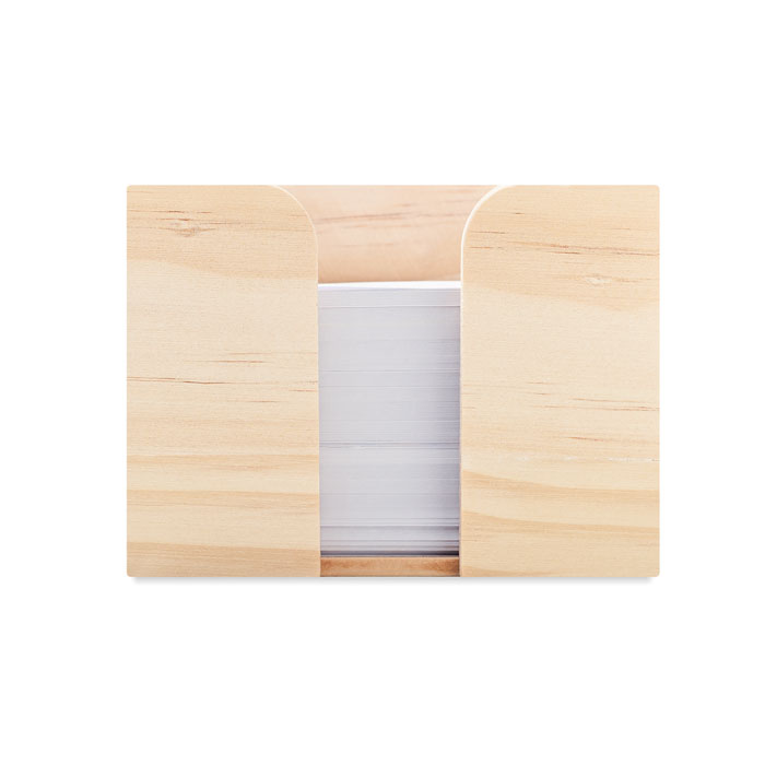 Notizzettelhalter in Würfelform. Holz. 600 Blatt, weißes 70 g/m² Papier, Maße: 9×9 cm.